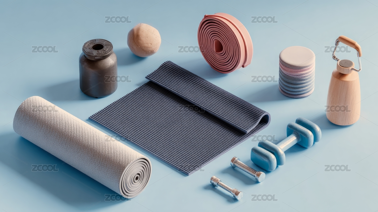 蓝色,背景,瑜伽垫,卷起,渐变,浅蓝,运动,和谐,宁静,静态