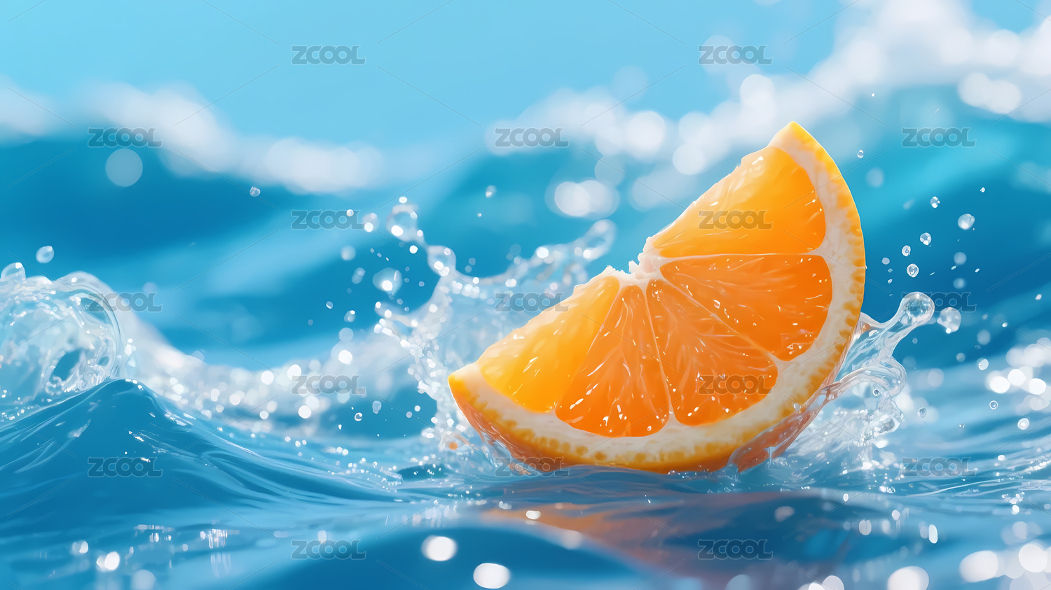 背景,漂浮,橙色,蓝色,模糊,气泡,清新,水珠,水波,橙子片