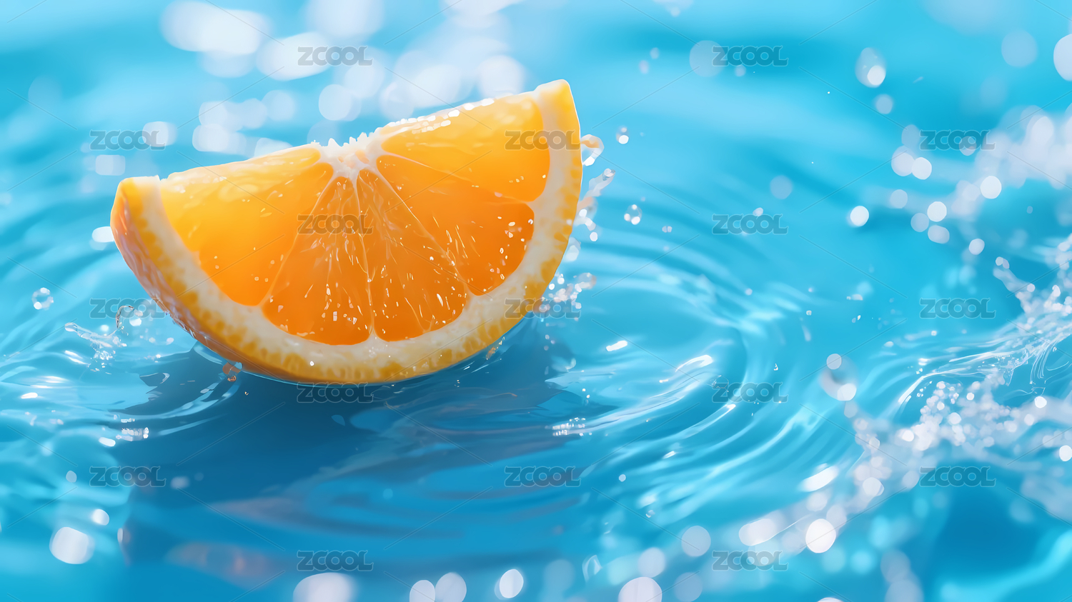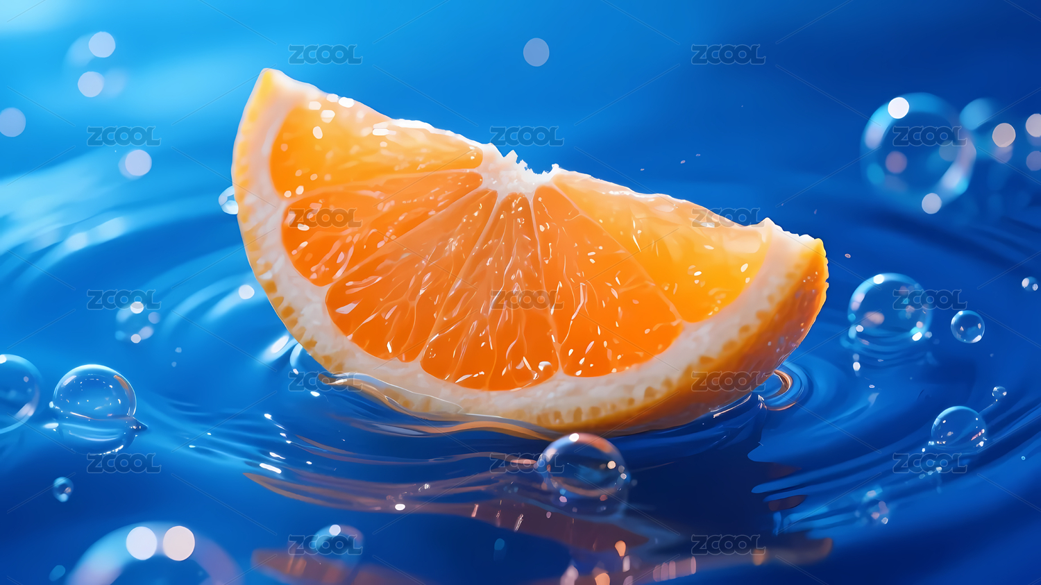 背景,深蓝色,橙色,鲜艳,清新,橙子,水滴,涟漪,自然,氛围