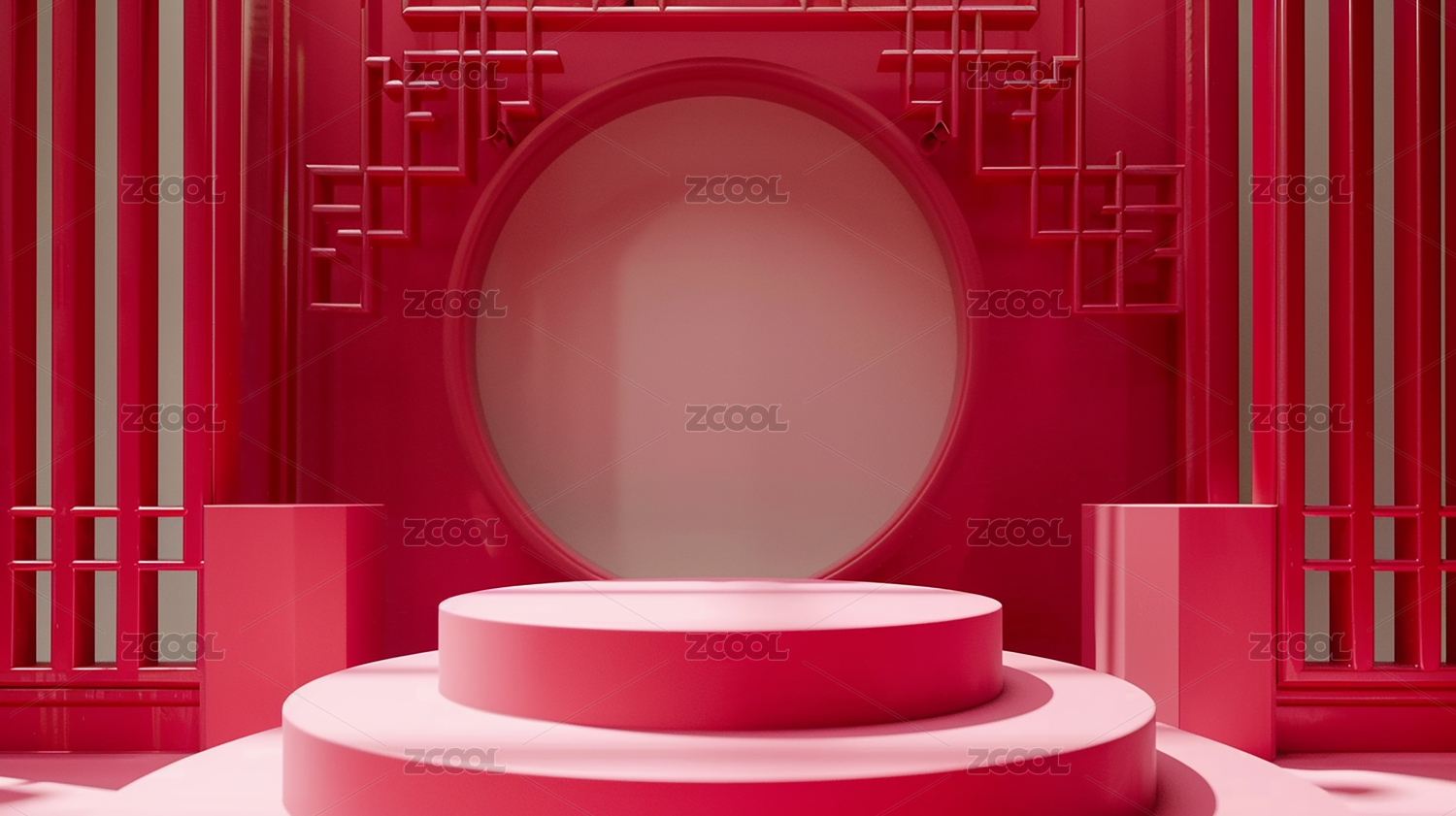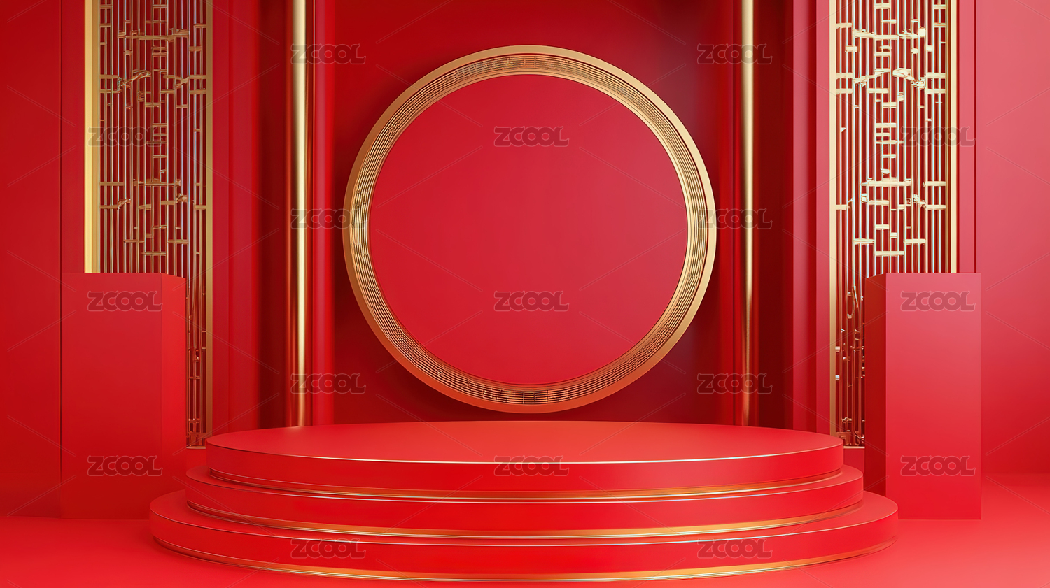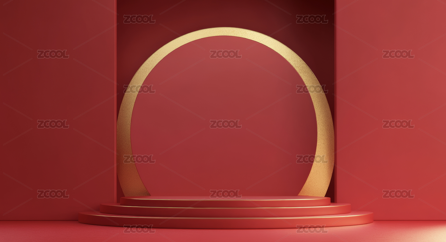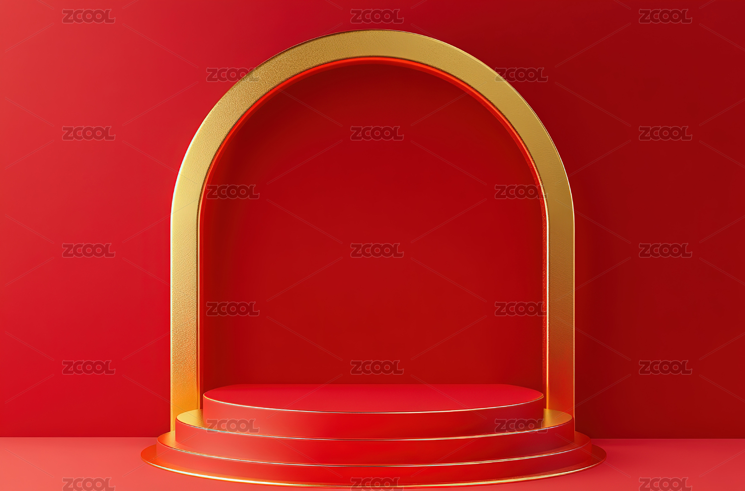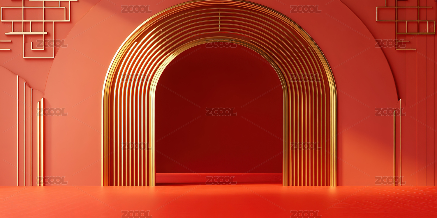 金色,装饰,红色,墙面,地面,几何,现代,拱形,圆形,平台