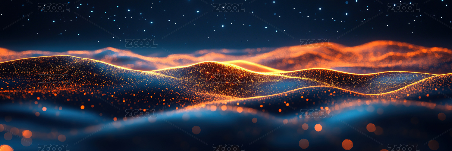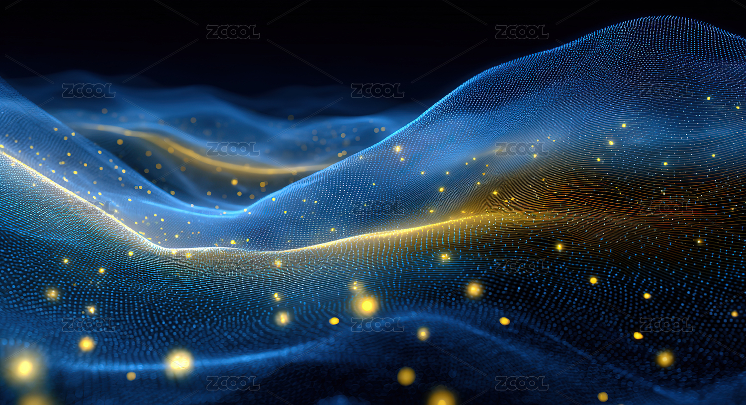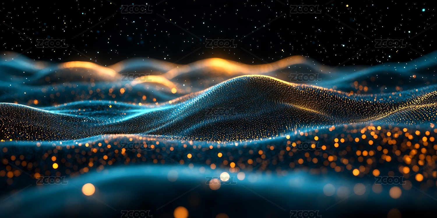 蓝色波浪金色粒子光斑背景