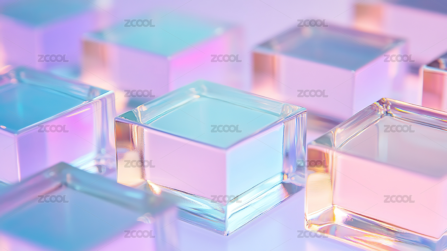 透明立方体排列在蓝色背景上