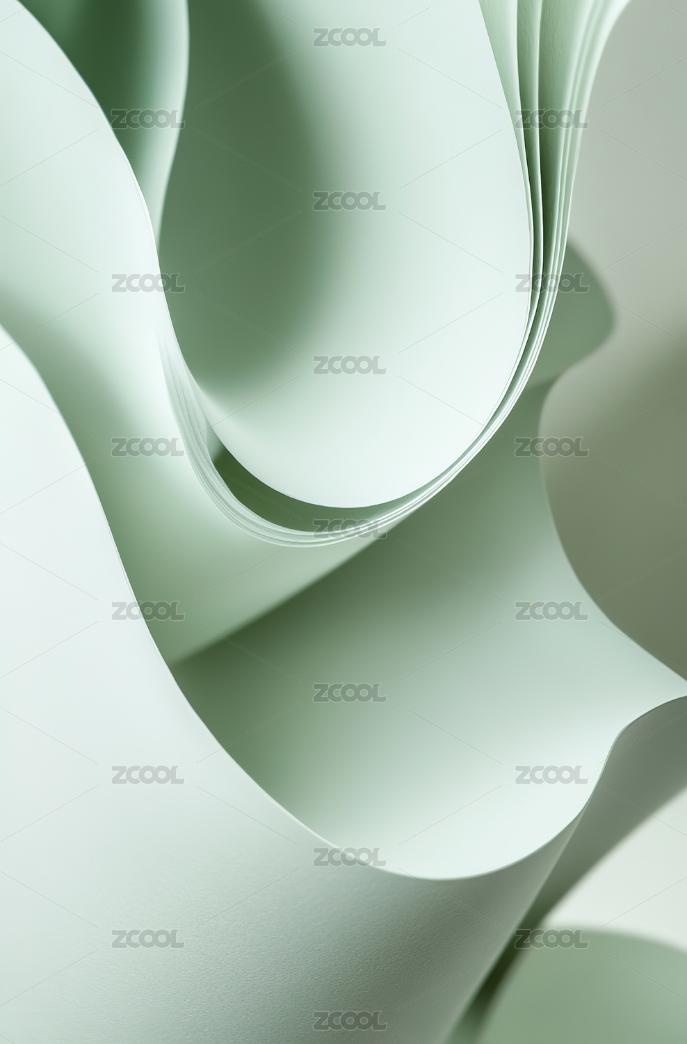 深绿色抽象曲线纸张背景营造视觉美感