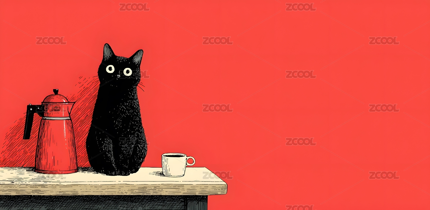 扁平小猫插画明亮一只可爱宠物猫绘画
