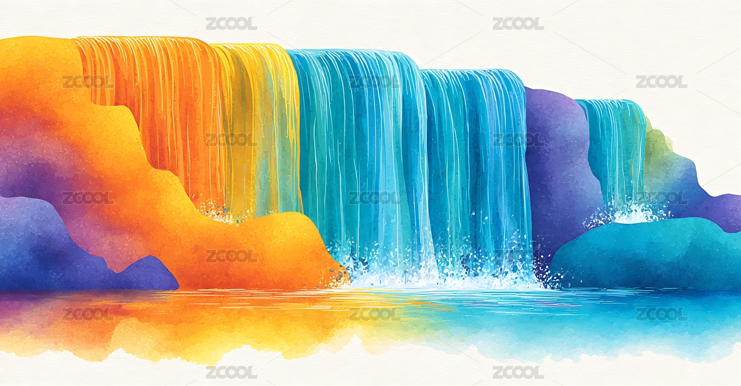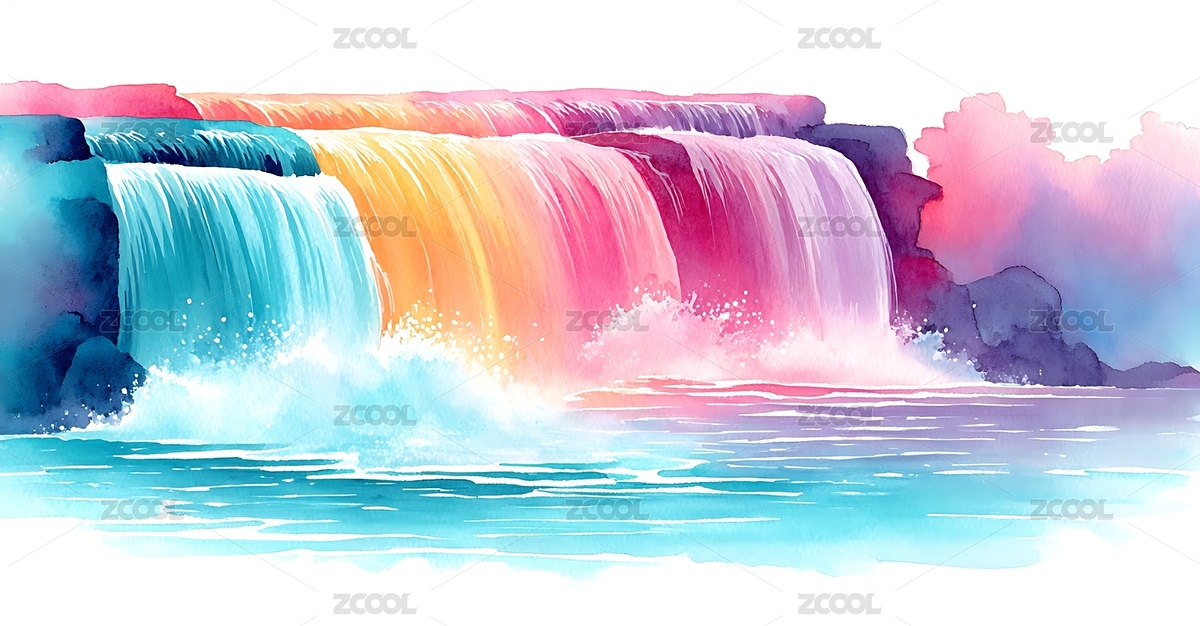 梦幻,彩虹,风景,自然,水彩,宁静,美丽,瀑布,奇观,清澈