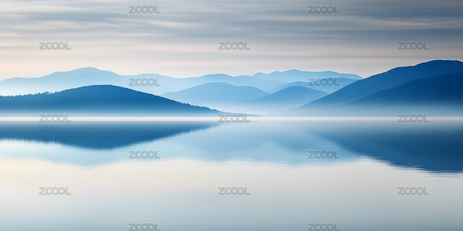 自然,环境,湖泊,远山,晨雾,宁静,倒影,树木,山脉,风景