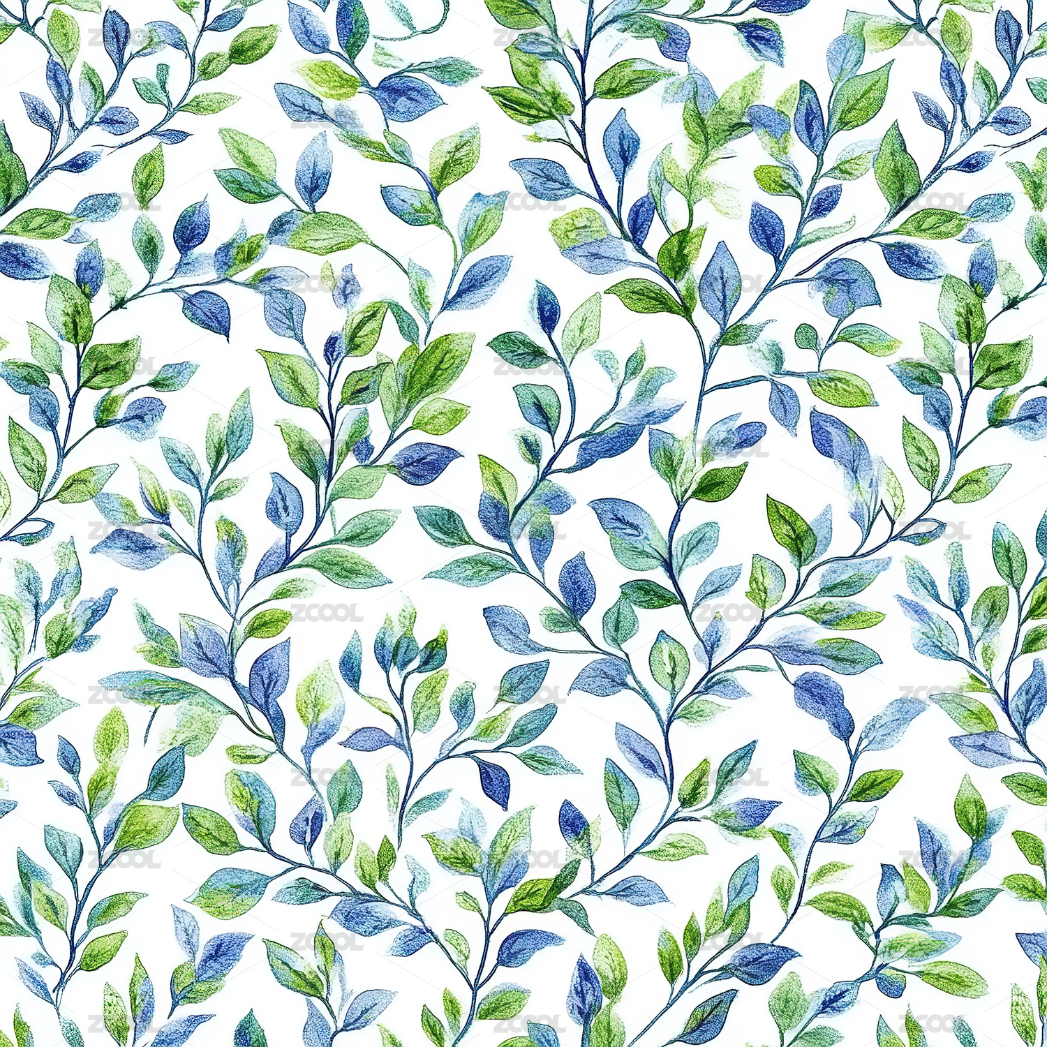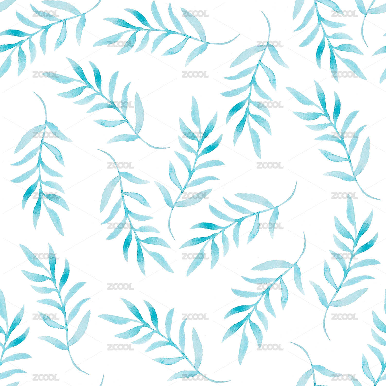 蓝色水彩叶子图案白色背景清新雅致