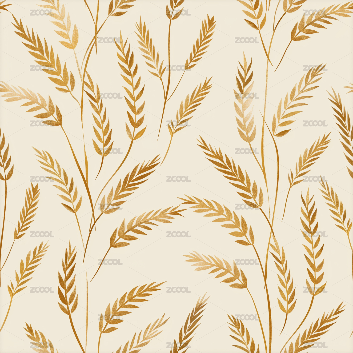 麦田成熟的金黄色饱满麦穗四方连续循环图案
