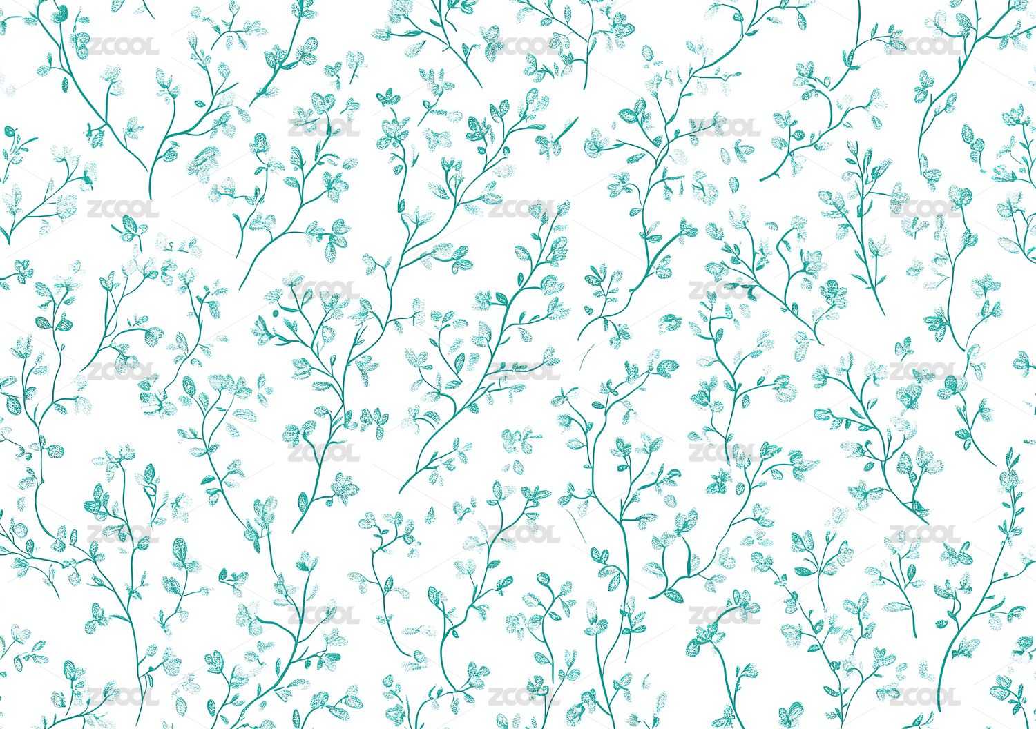 墨绿色枝叶印花