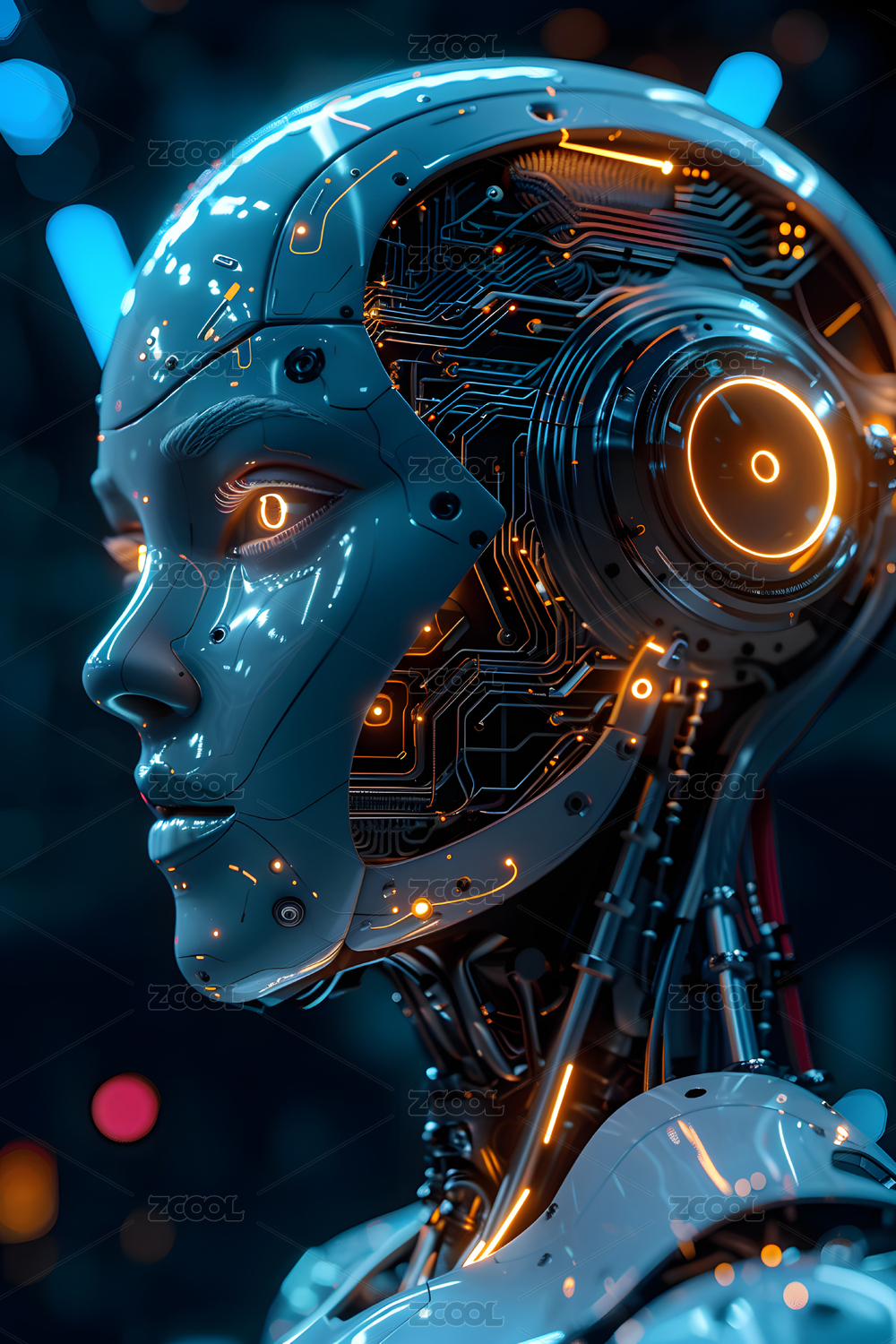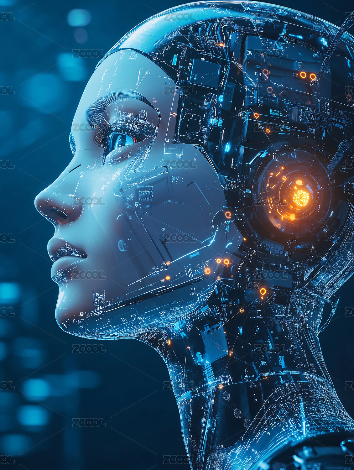 未来科技感的机器人女性侧面像