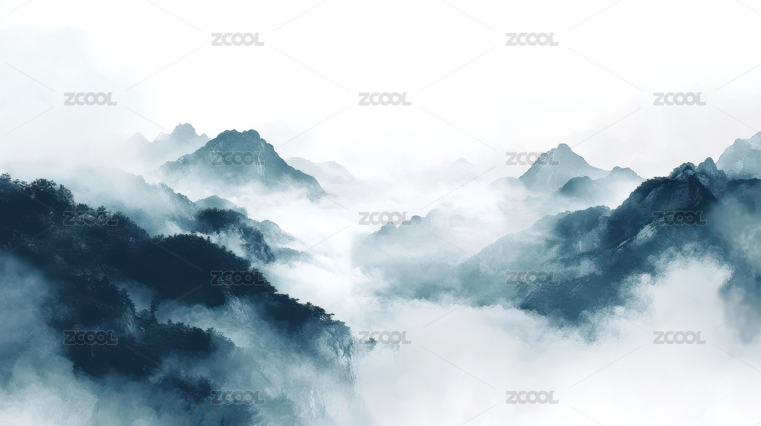 山水,竹林,水墨画,风景,雾气,远山,中式,自然景观,中国风,古风