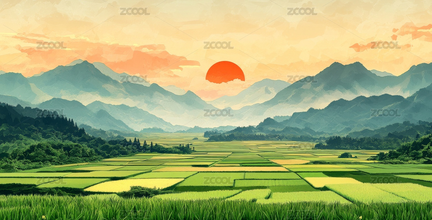 立秋节气秋天农业收获农田粮食成熟秋收插画