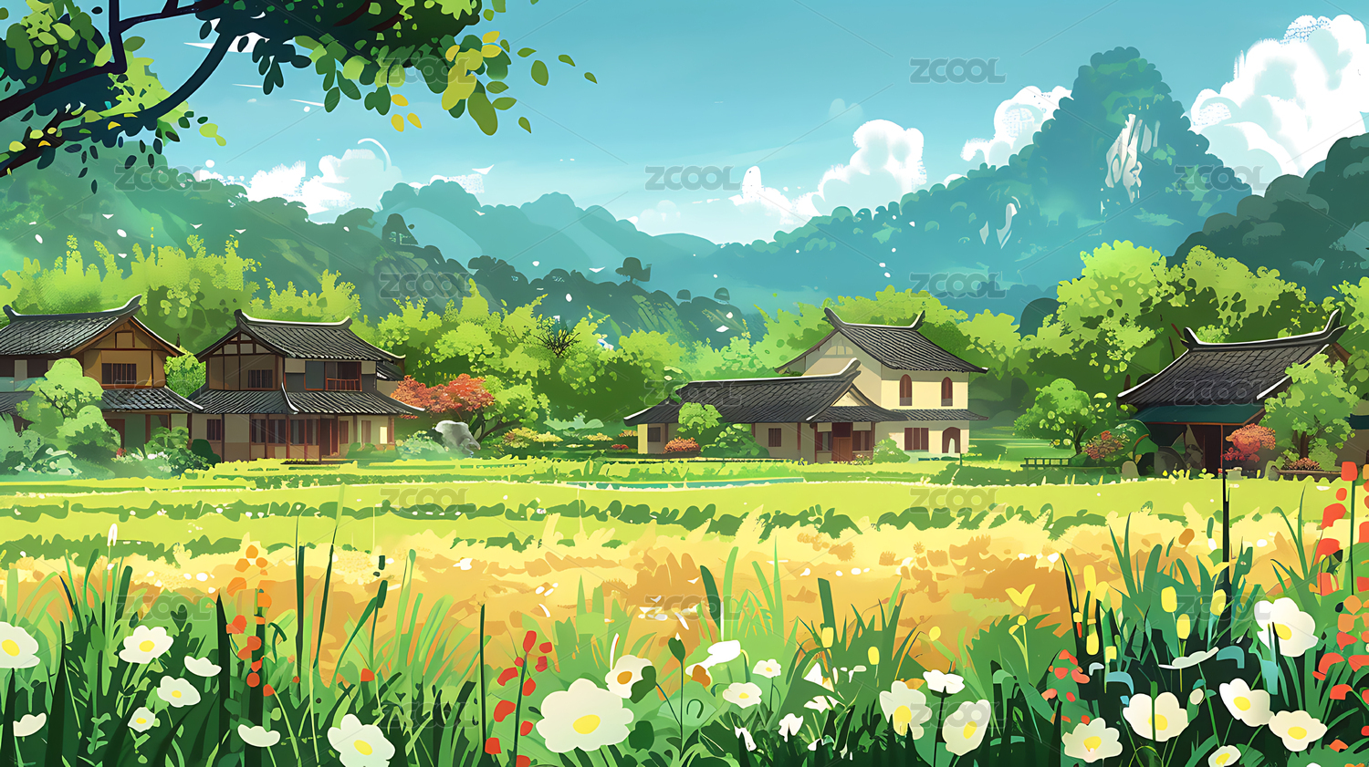 田野,山川,绿植,自然风光,田园,蓝天,白云,乡村,自然,植物