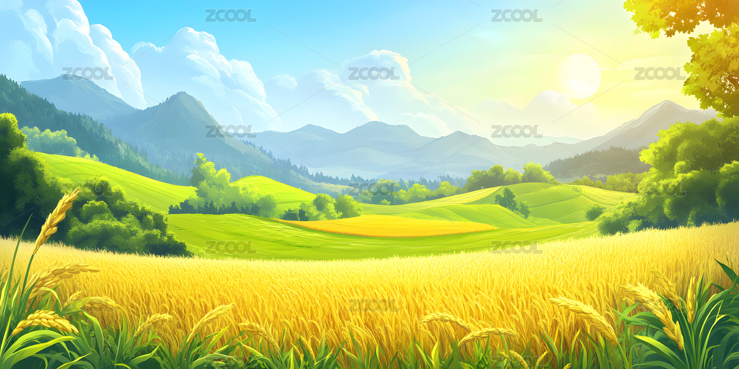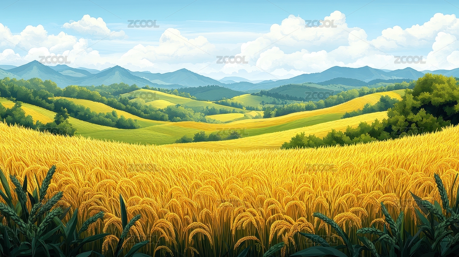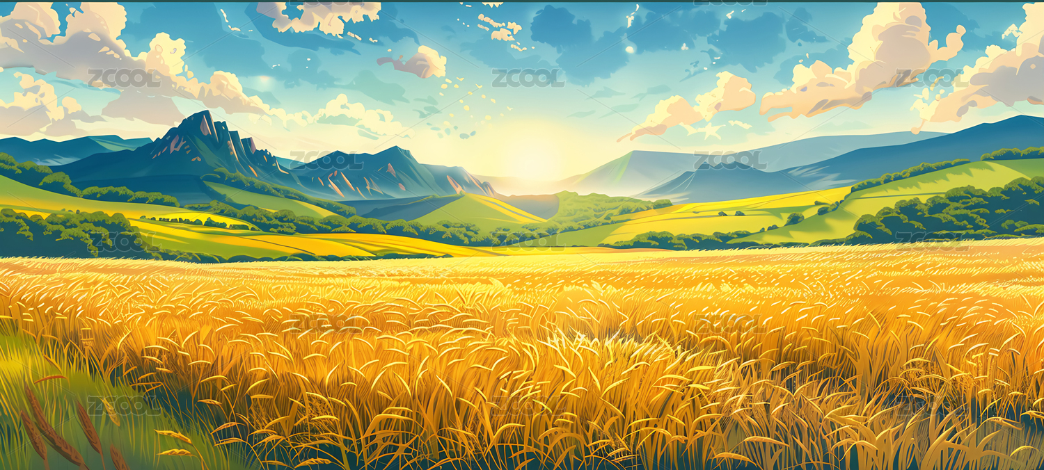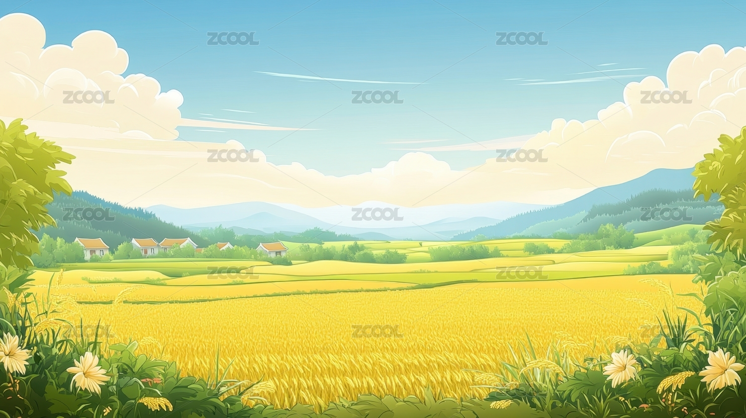 立秋节气秋天农业收获农田粮食成熟秋收插画
