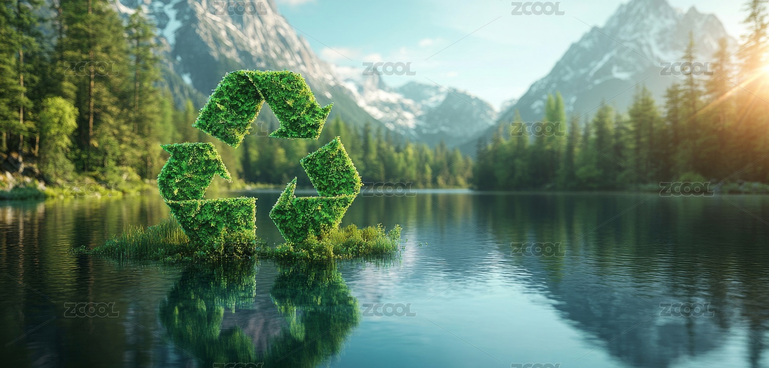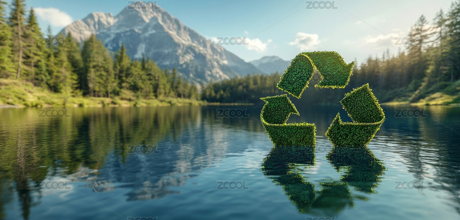 山水,绿植,回收标志,自然景观,环保,湖泊,山林,绿色,生态,环境