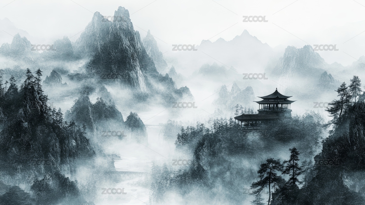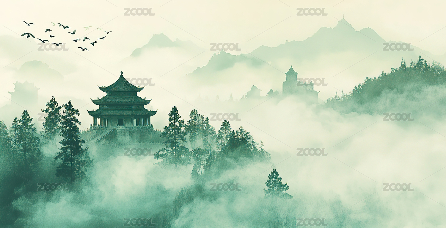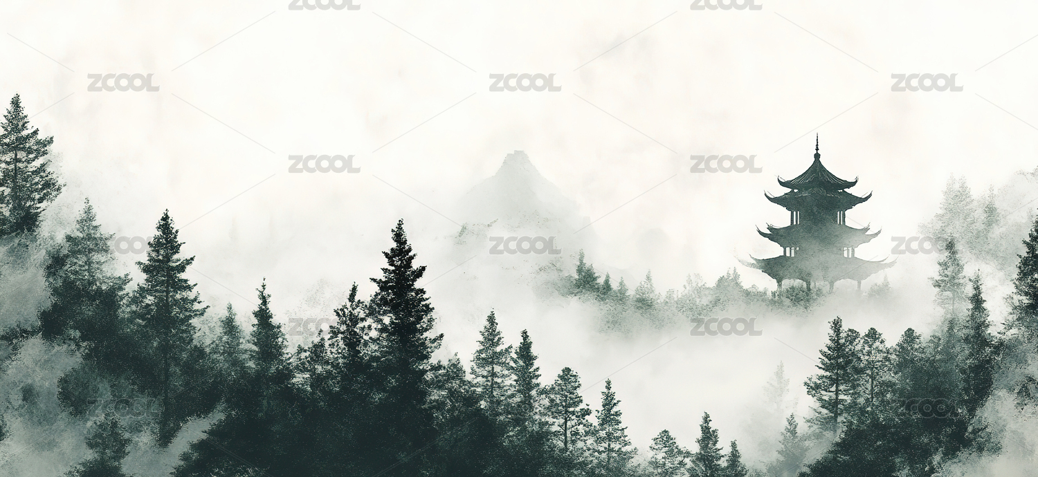 宝塔,山脉,森林,云雾,自然风光,远景,中式建筑,山景,云海,远山