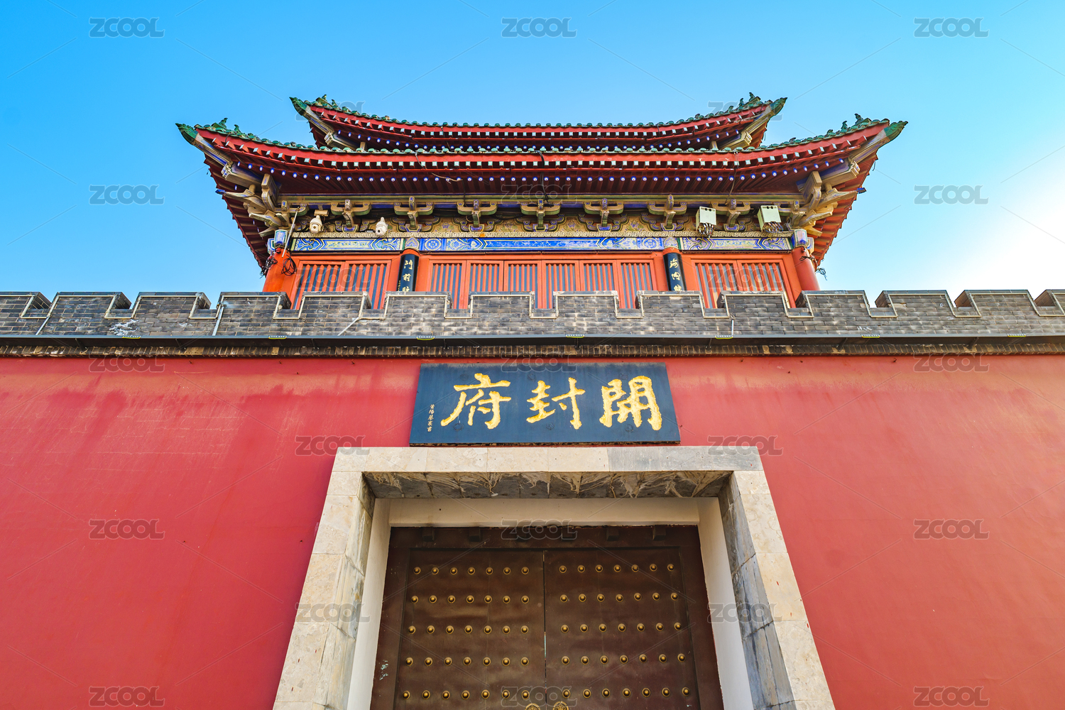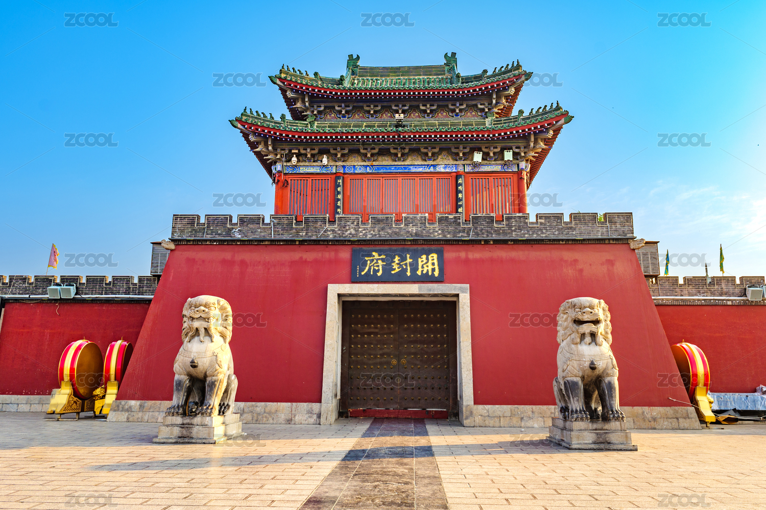 户外,建筑,开封府,古建筑,红墙,石狮子,城门,牌匾,开封,历史古迹