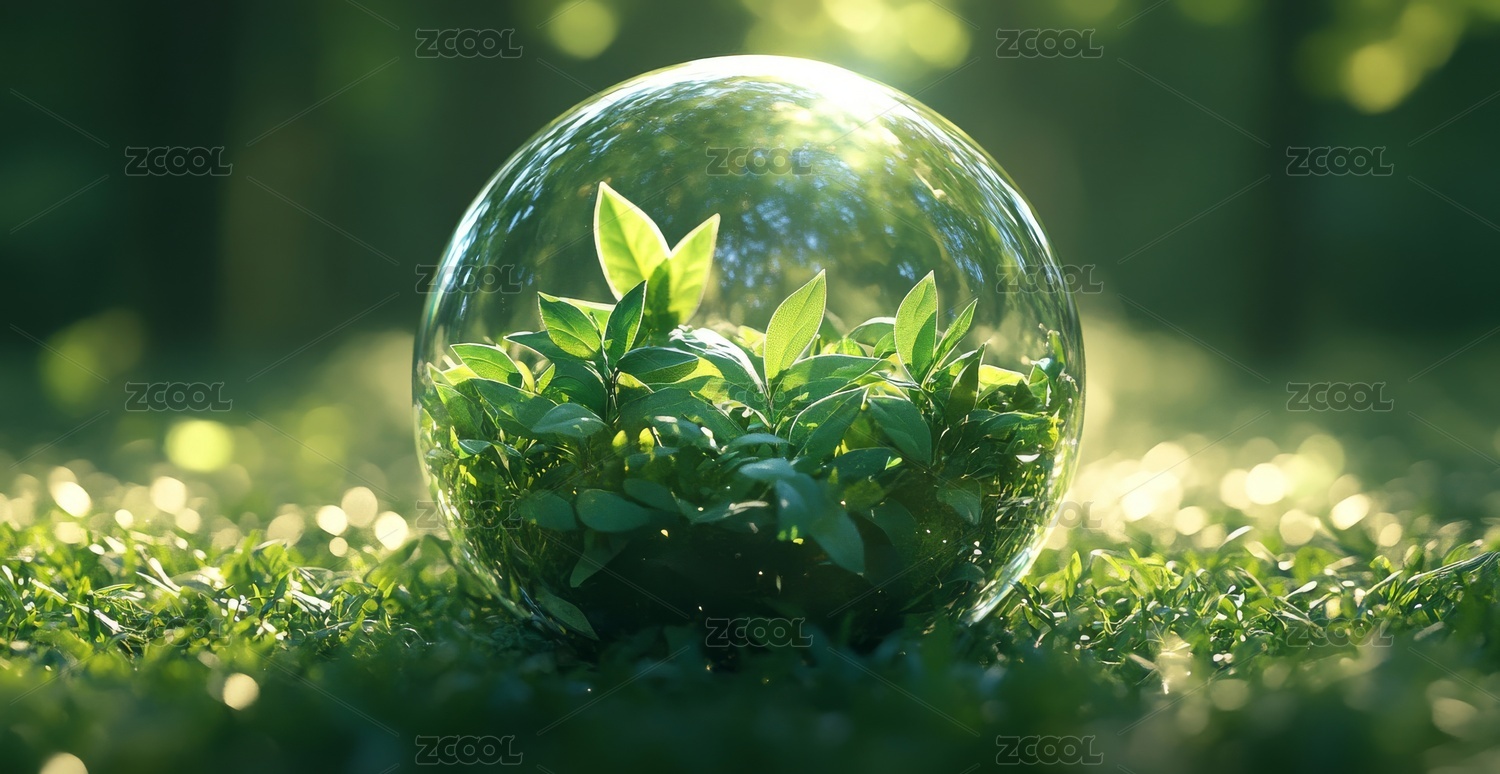 玻璃球中的绿色植物