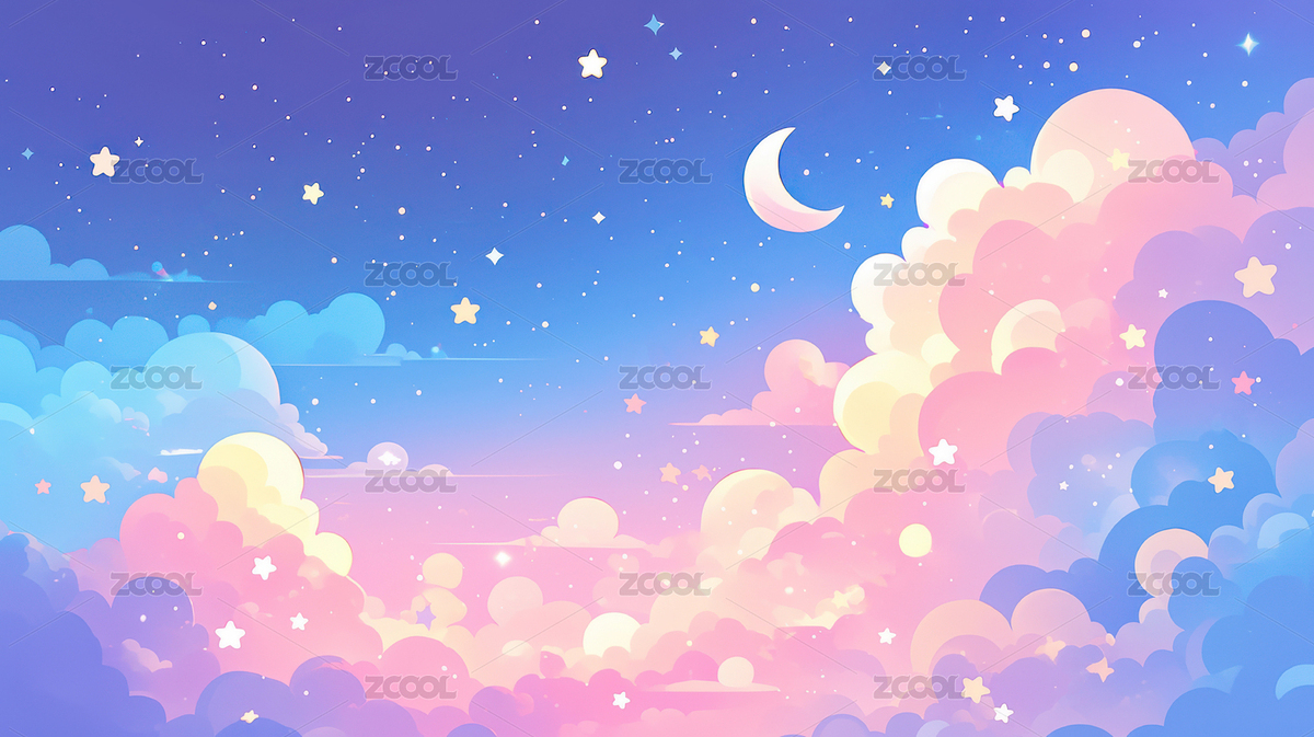 云朵,星星,天空,云彩,背景,壁纸,梦幻,治愈,童趣,卡通