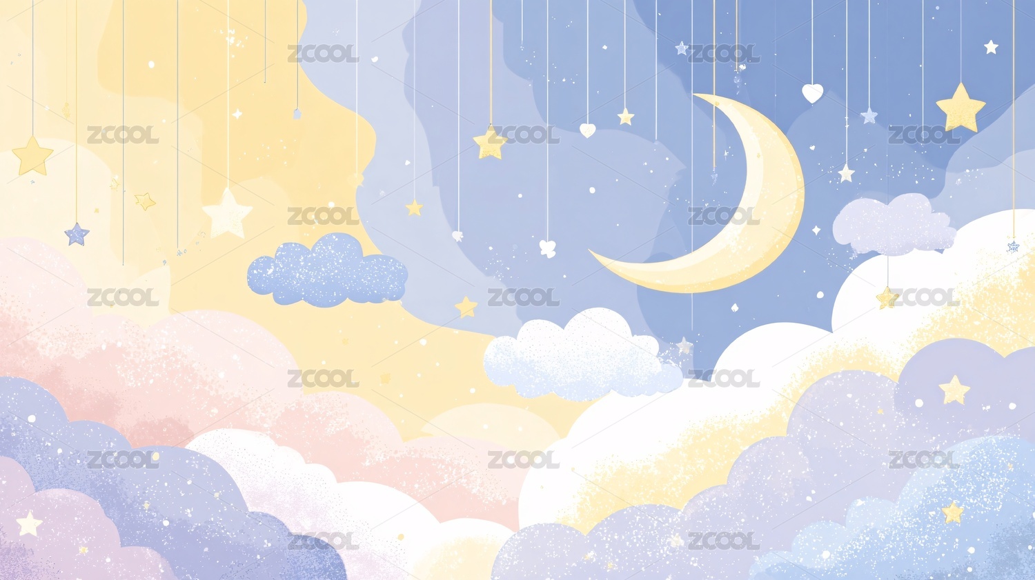 云朵,星星,天空,云彩,背景,壁纸,梦幻,治愈,童趣,卡通