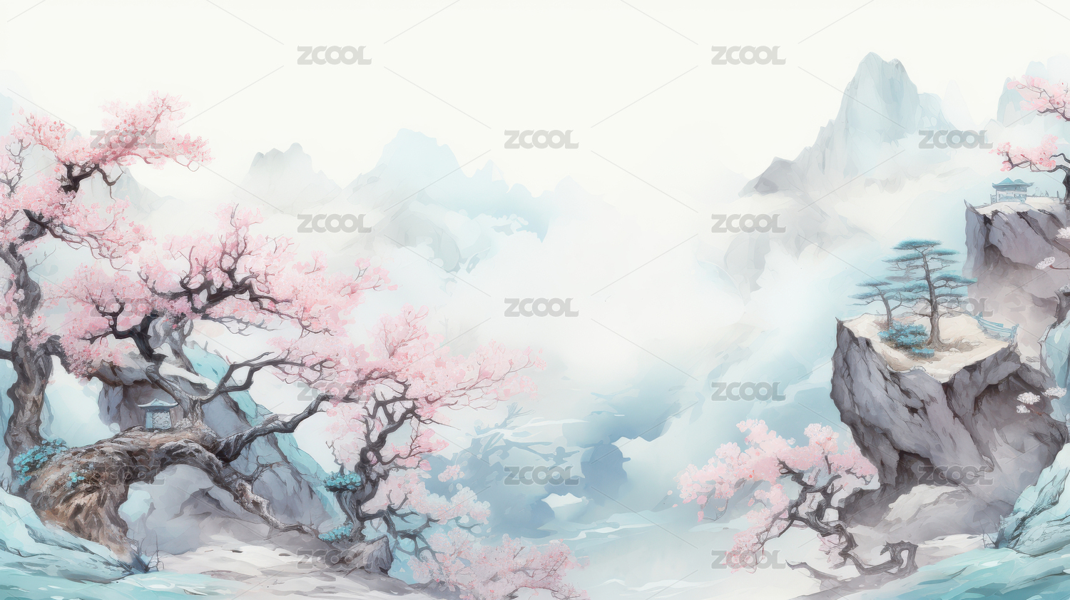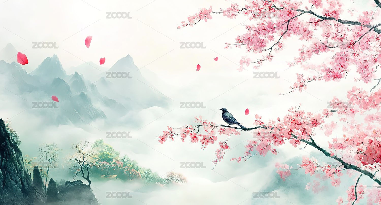 春天,国风,国风桃花,手绘,装饰花,中国画,工笔画,桃花,水彩画,花瓣