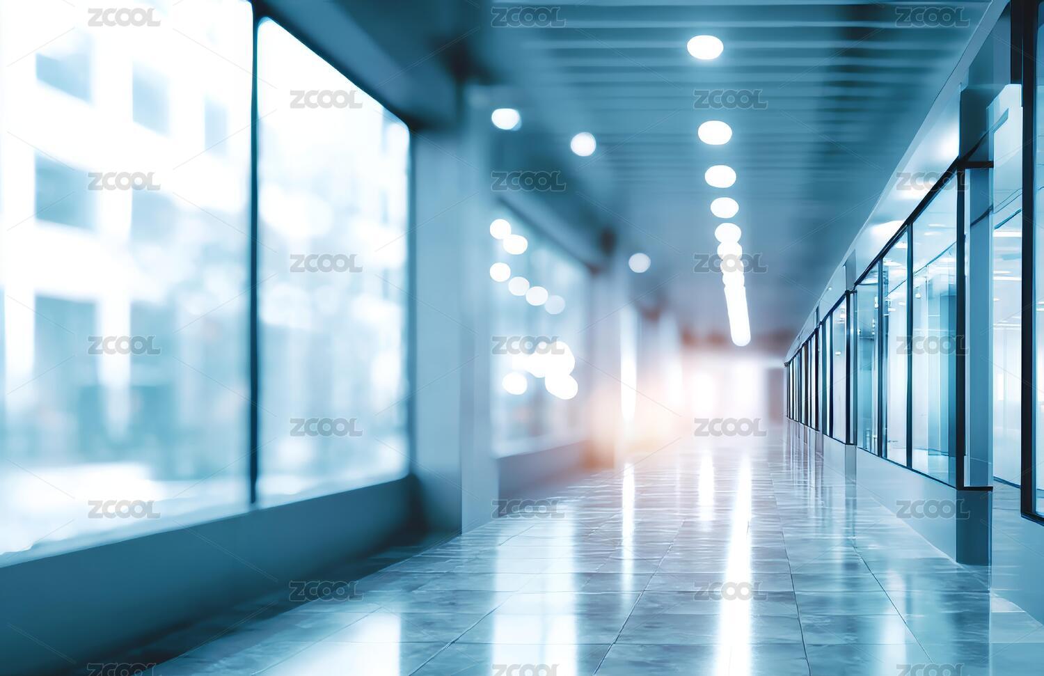 现代办公走廊和落地窗