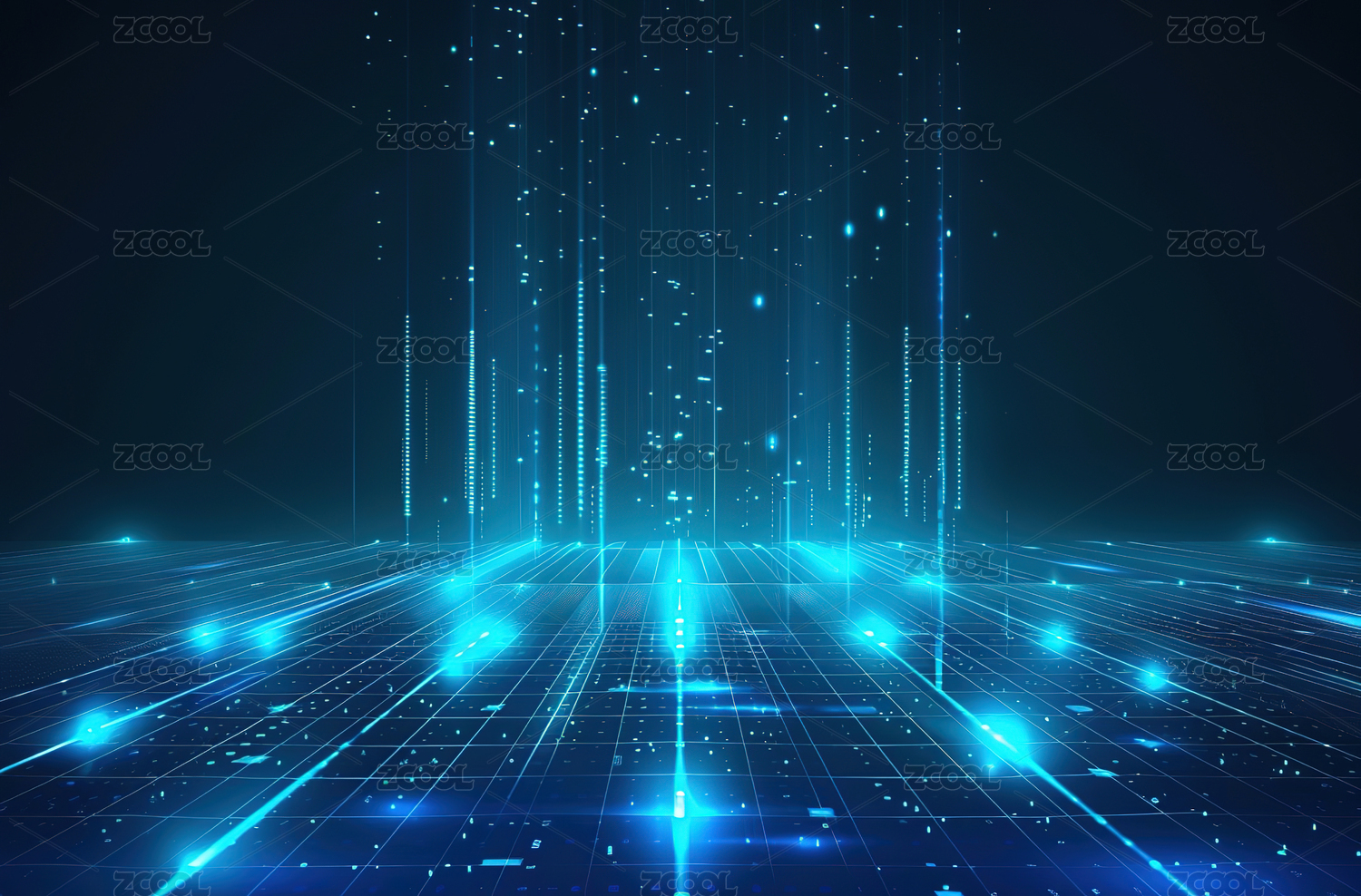蓝色光点构成的科技网格空间