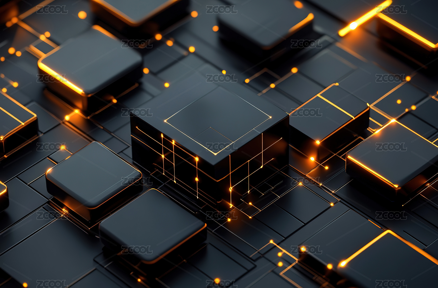科技感十足的发光立方体与线路交织