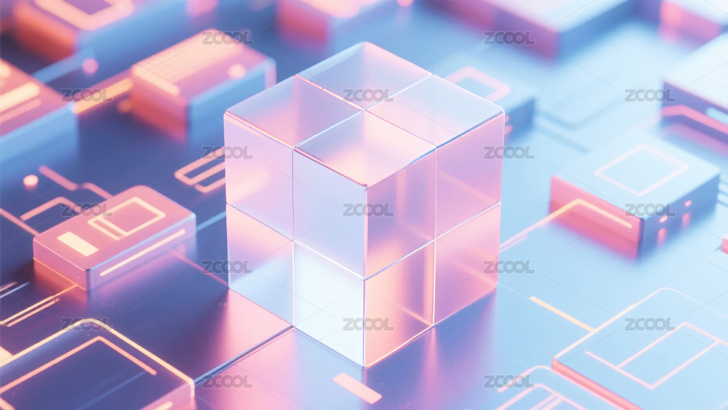 透明立方体与电路板背景