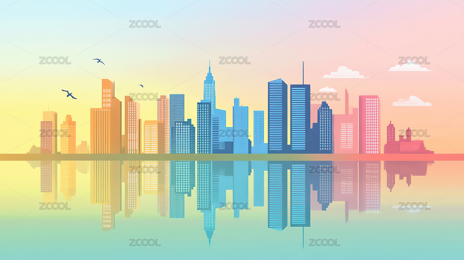 城市,天际线,高楼,建筑,天空,云彩,夕阳,黄昏,倒影,水面