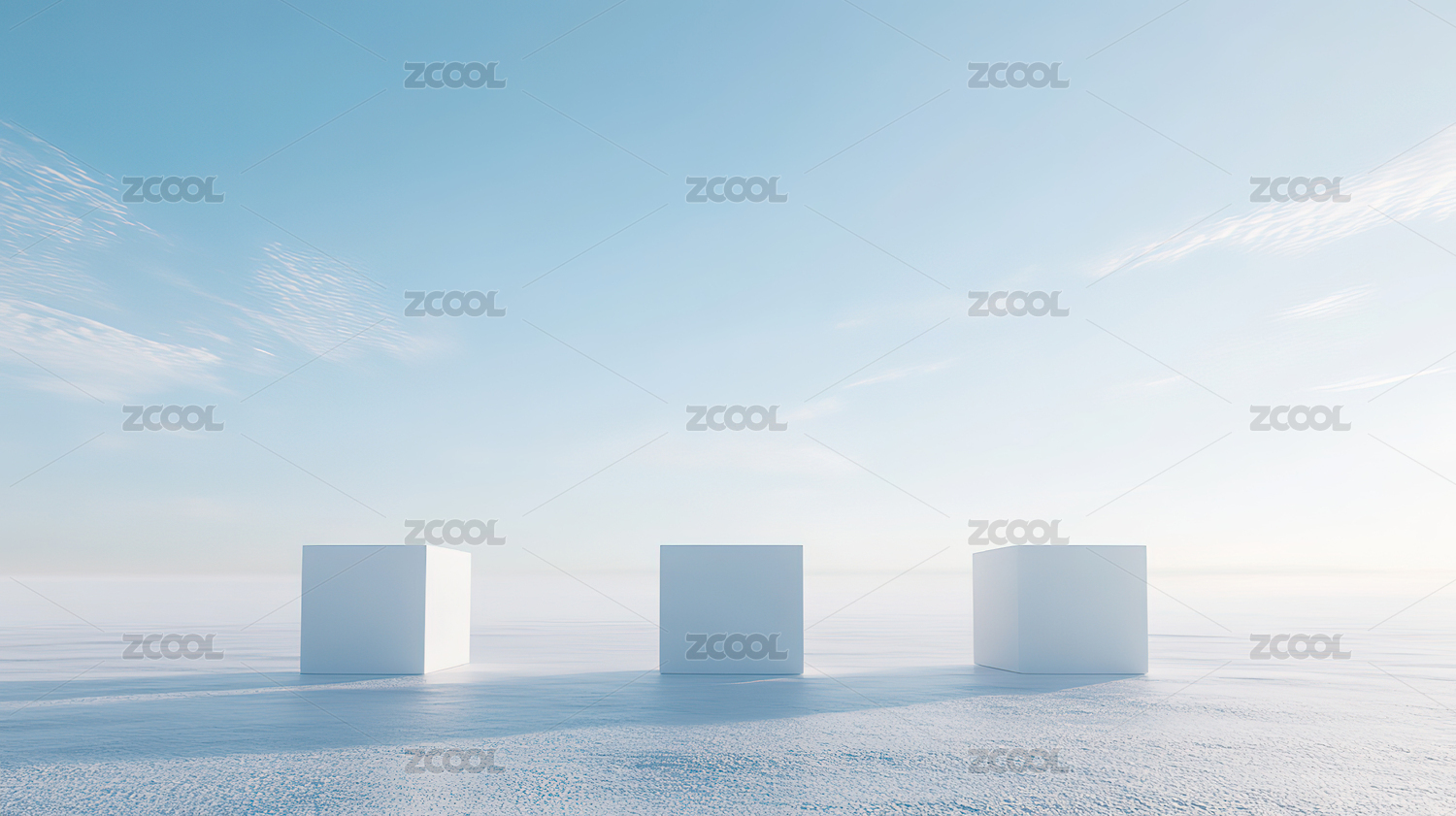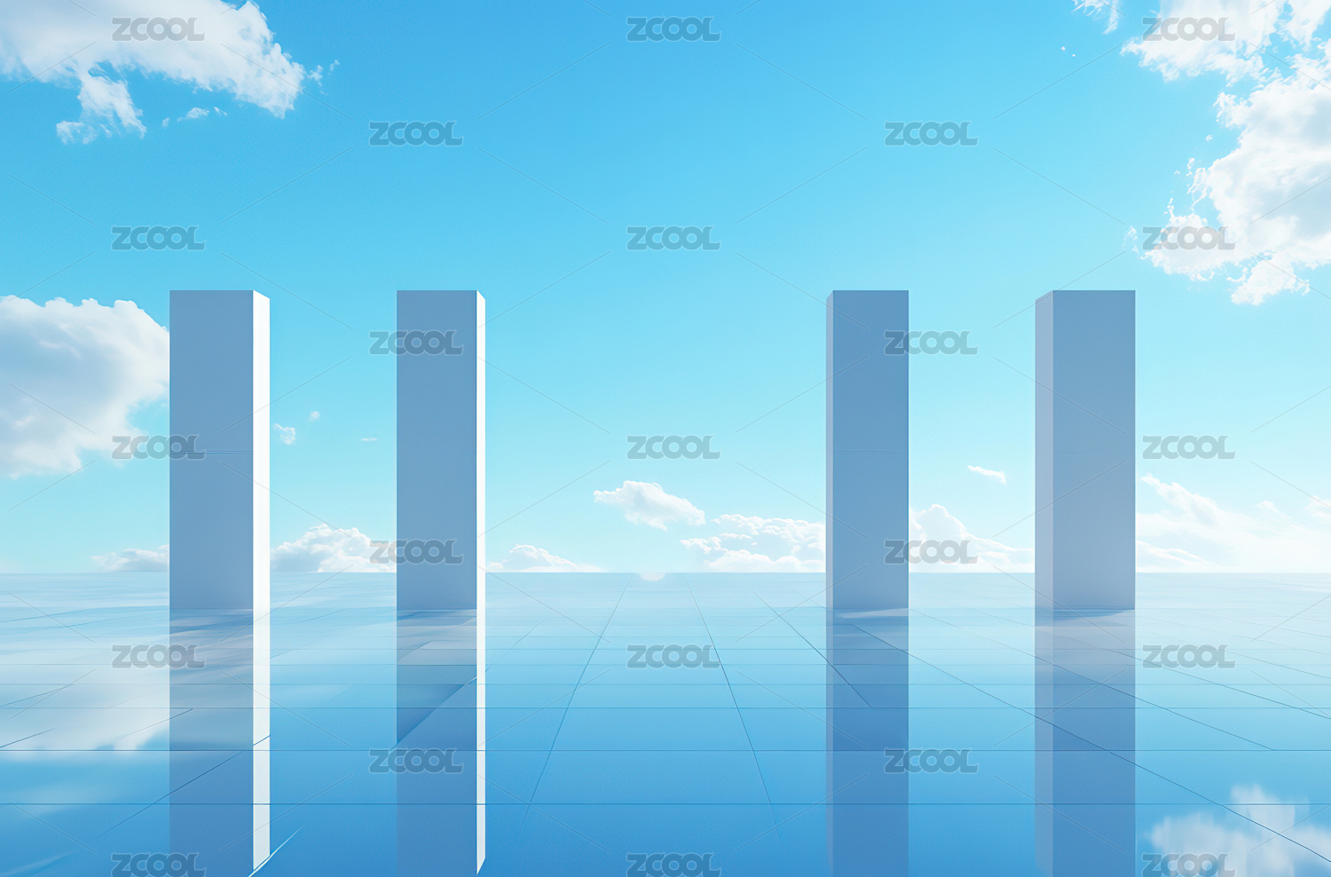蓝色,天空,云朵,立方体,水面,倒影,几何,简约,宁静,清澈