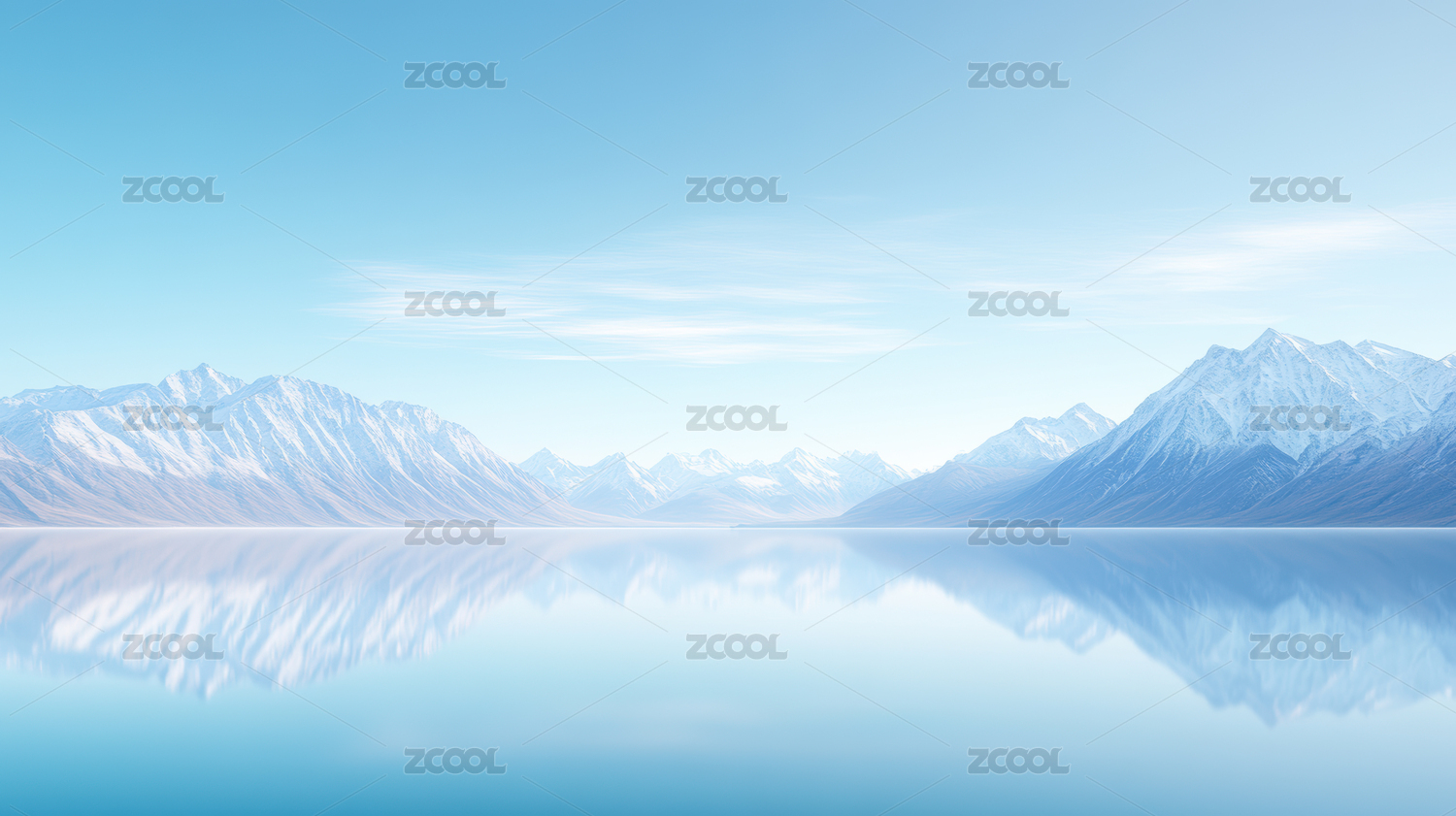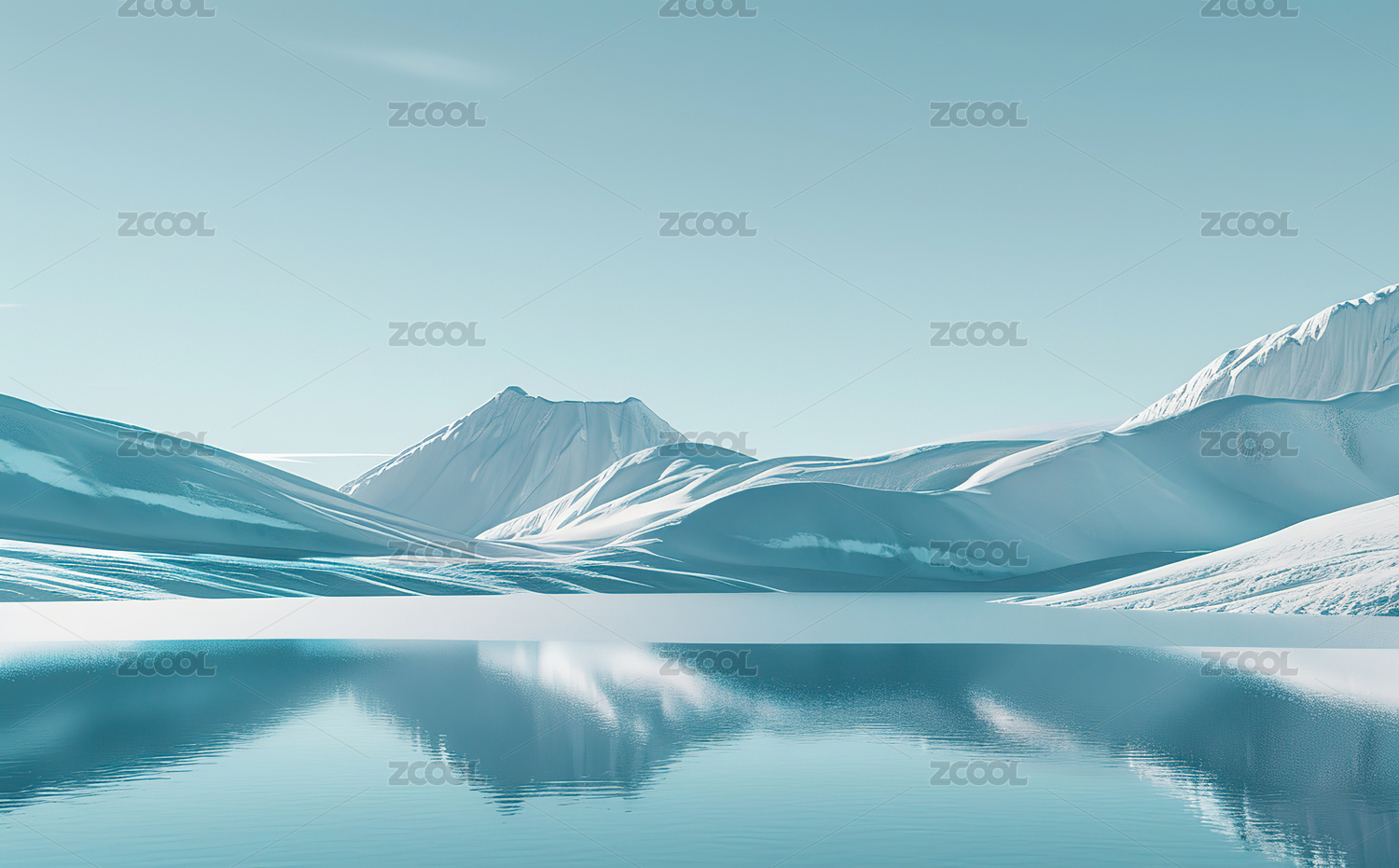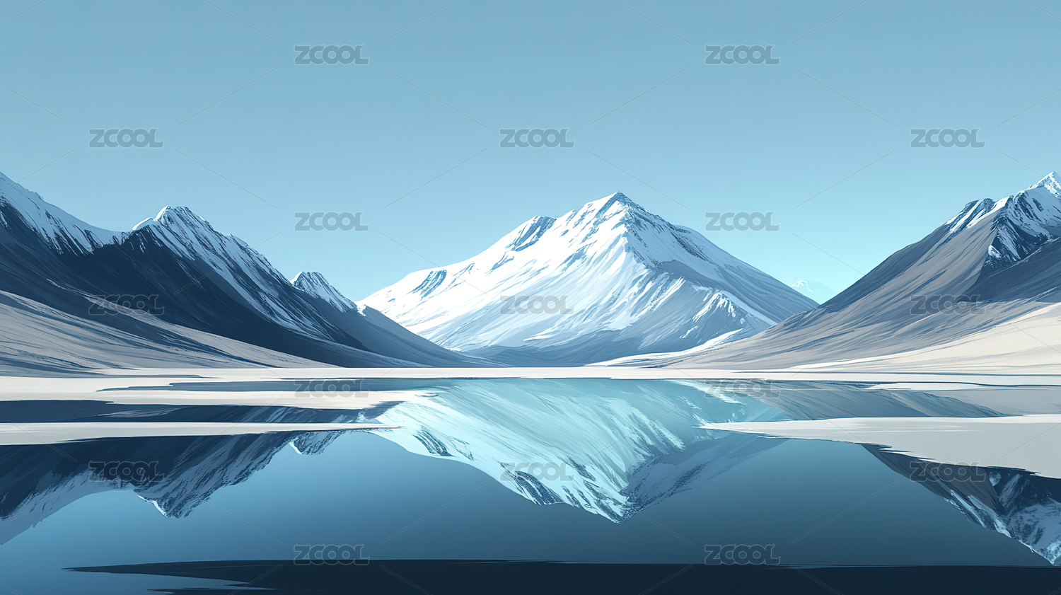 冰雪山脉平静湖面