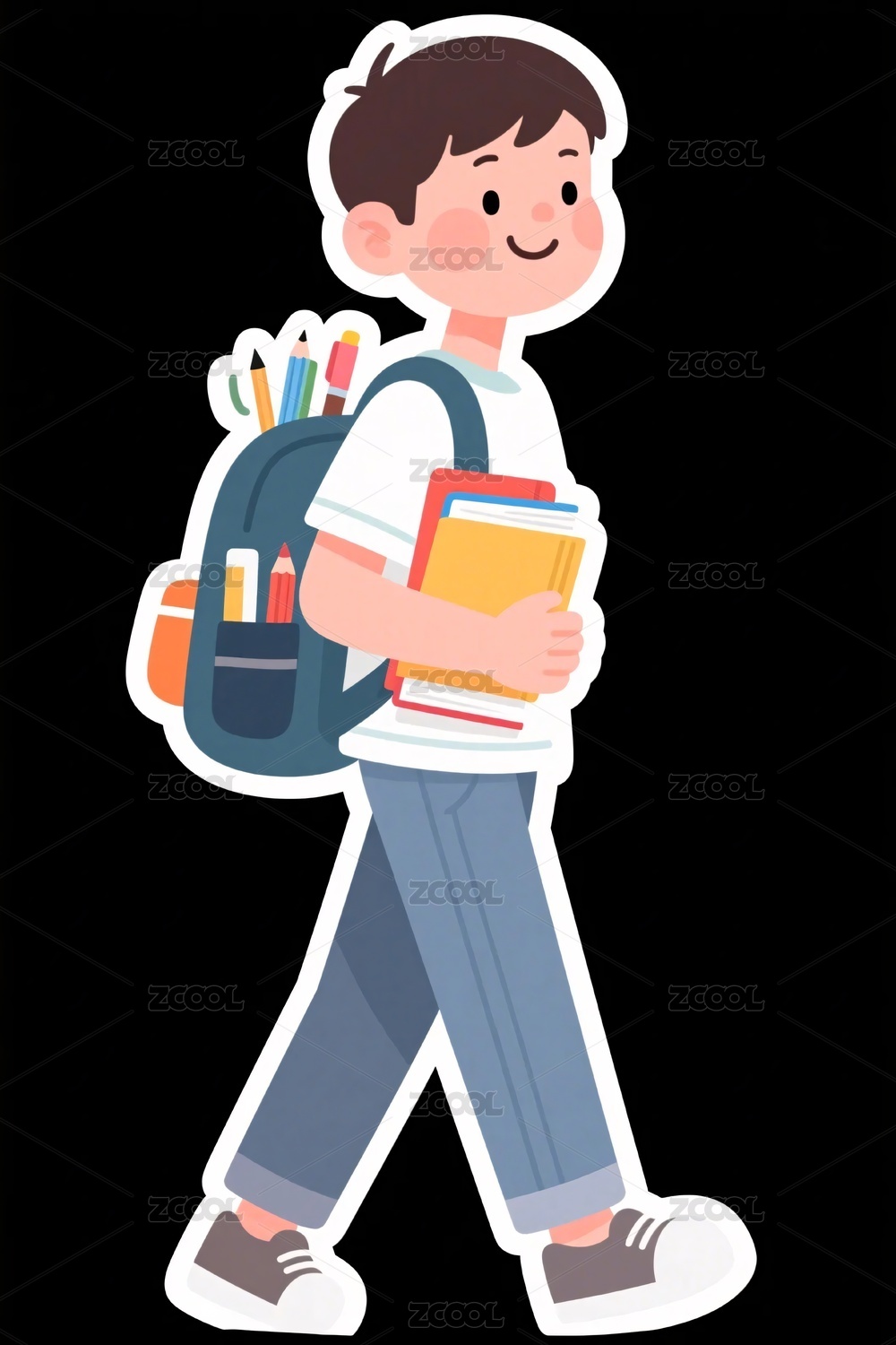 卡通抱着书籍背书包开心快乐学习的男孩插画