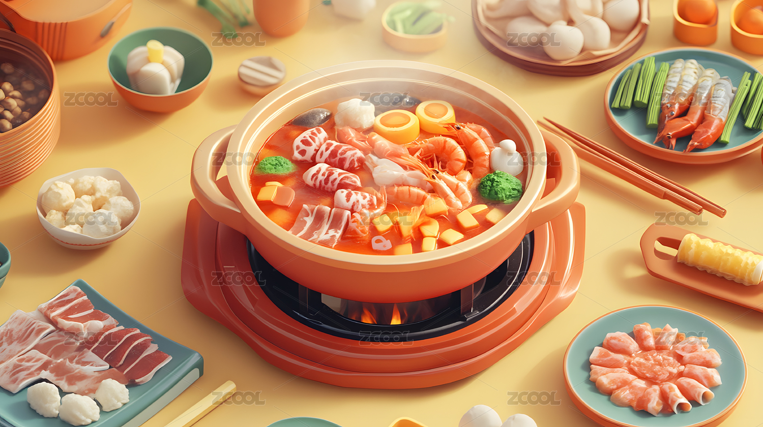 食物,美食,美味,火锅,食材,菜品,肉类,蔬菜,丸子,面条
