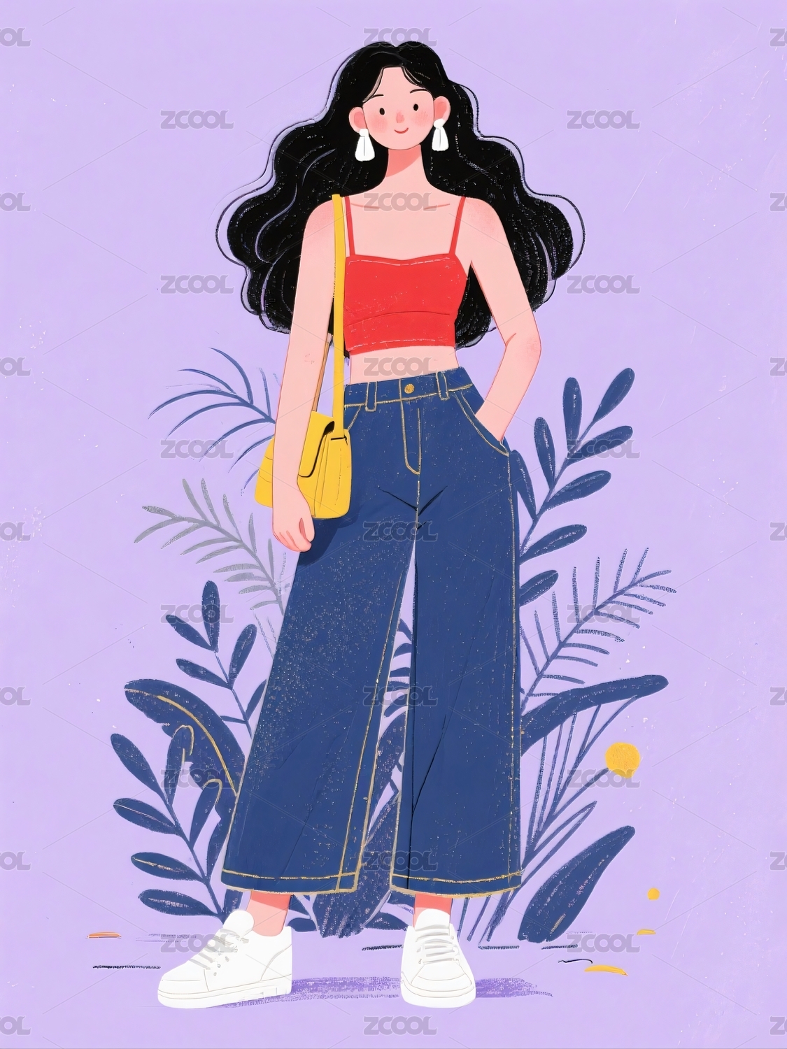 扁平风文艺女生站姿