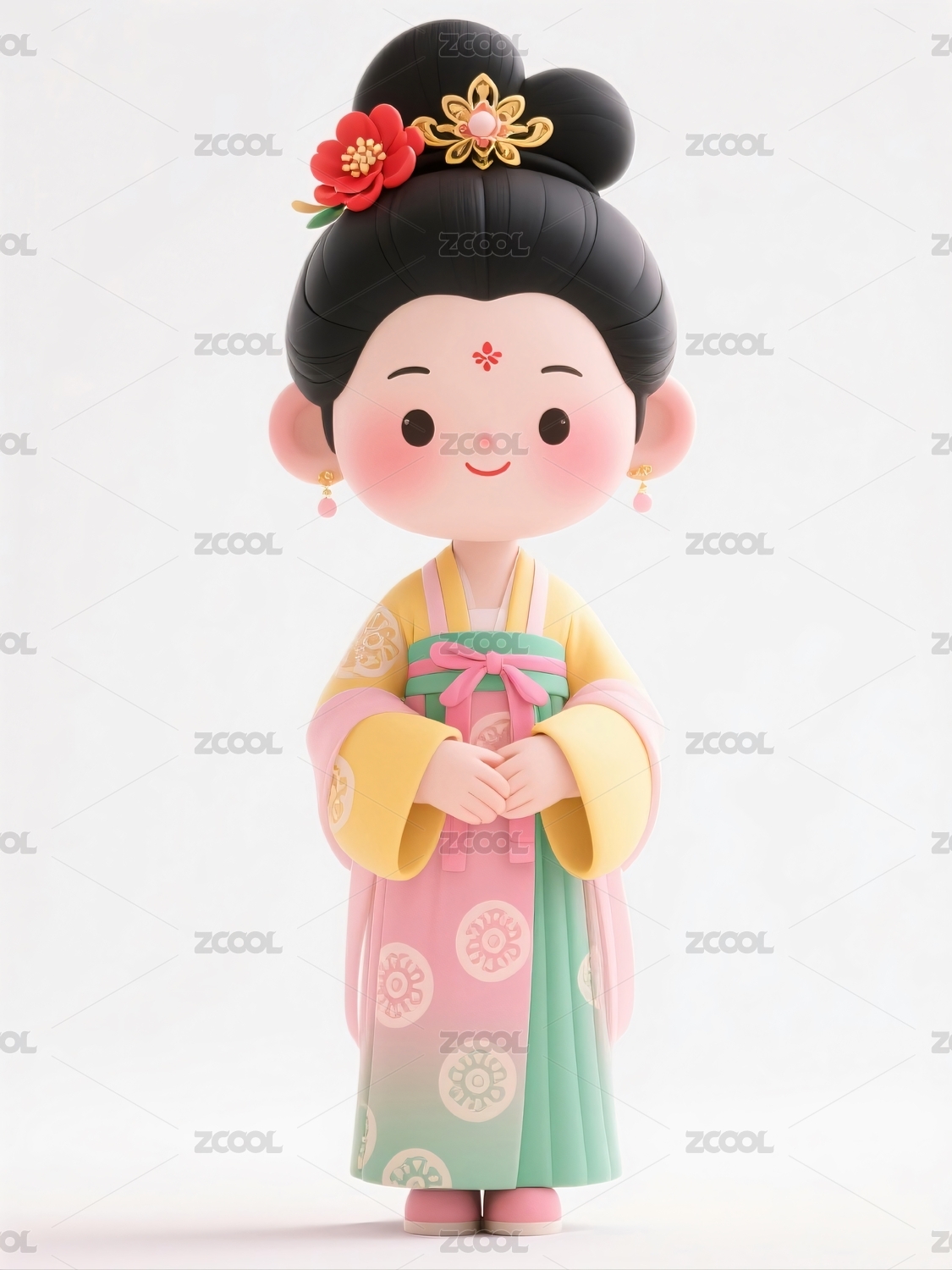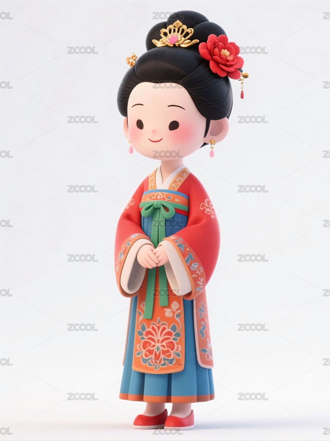 中国风,静态画面,整体构图,传统服饰,古典风格,花朵装饰,动漫人物,手绘风格,清新风格,艺术作品