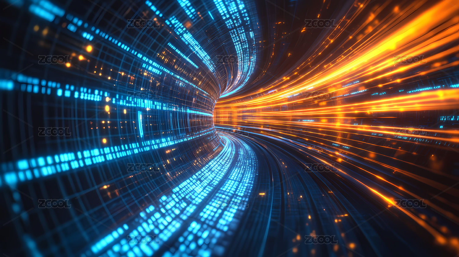 蓝色能量粒子隧道模糊散景发光明亮抽象背景