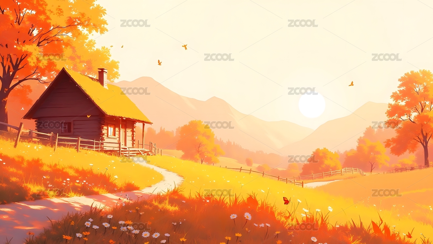 秋季,立秋,秋分,节气,树木,阳光,草地,远山,自然,风景