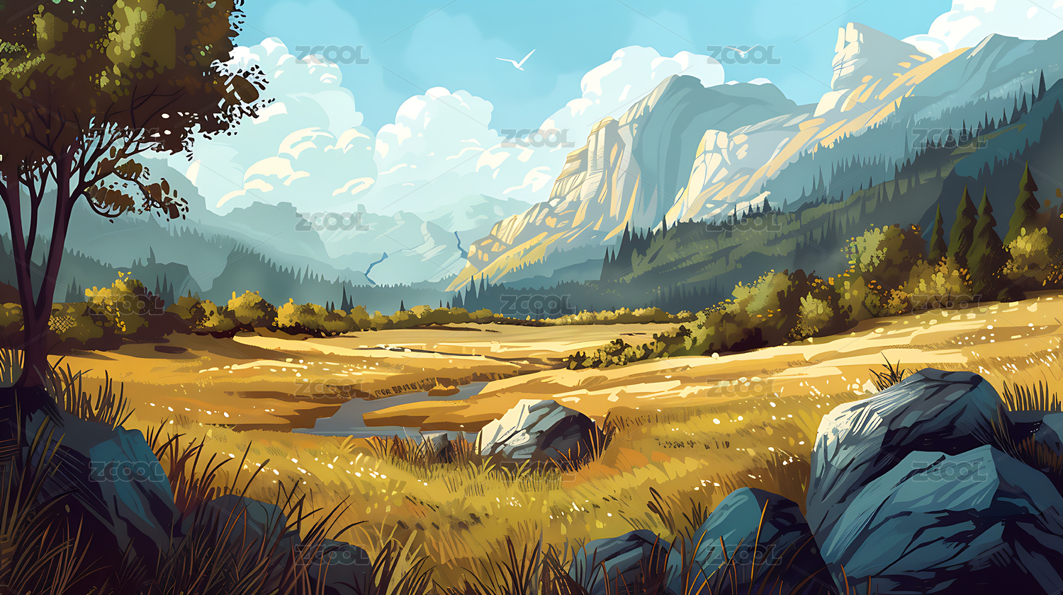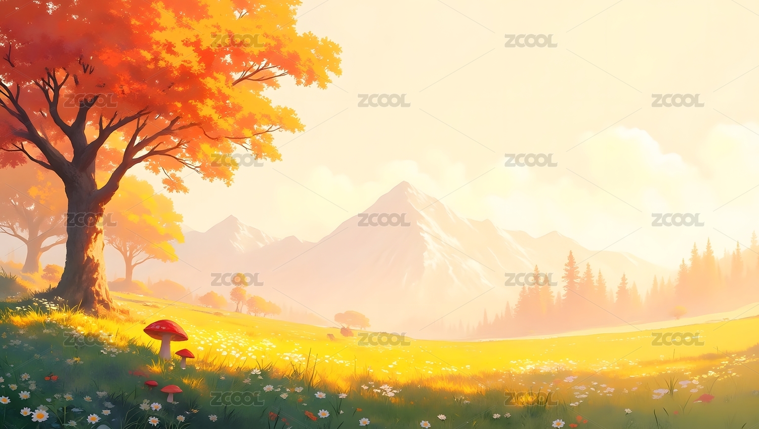 秋季,立秋,秋分,节气,树木,阳光,草地,秋天,远山,自然