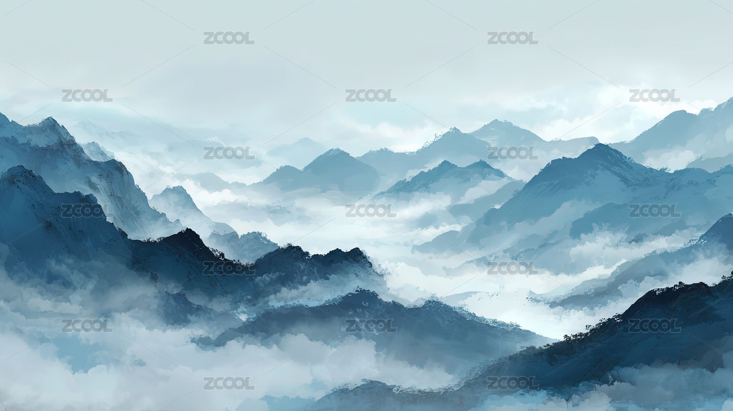 水墨云山意境