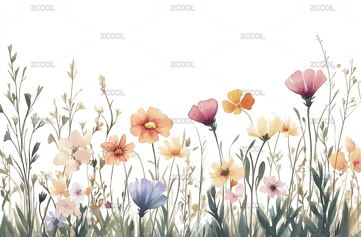 花朵,黄色,植物,色彩,粉色,水墨画,绿色,红色,白色,野草