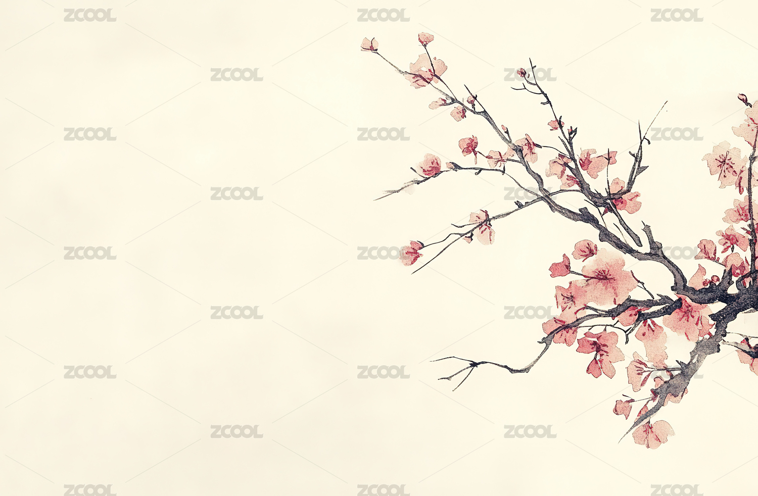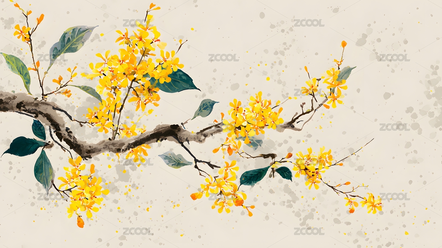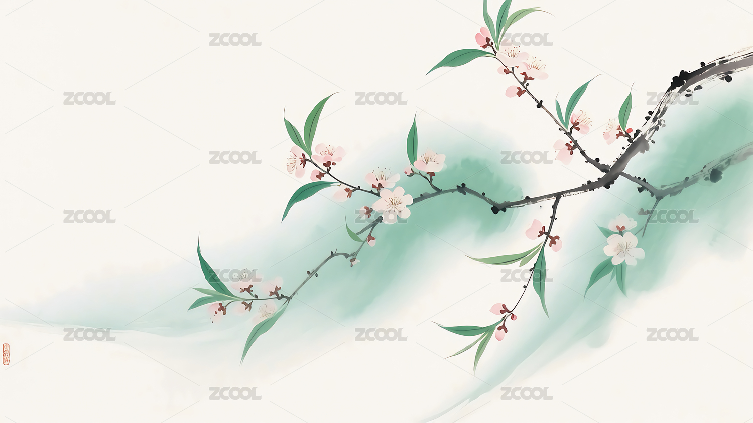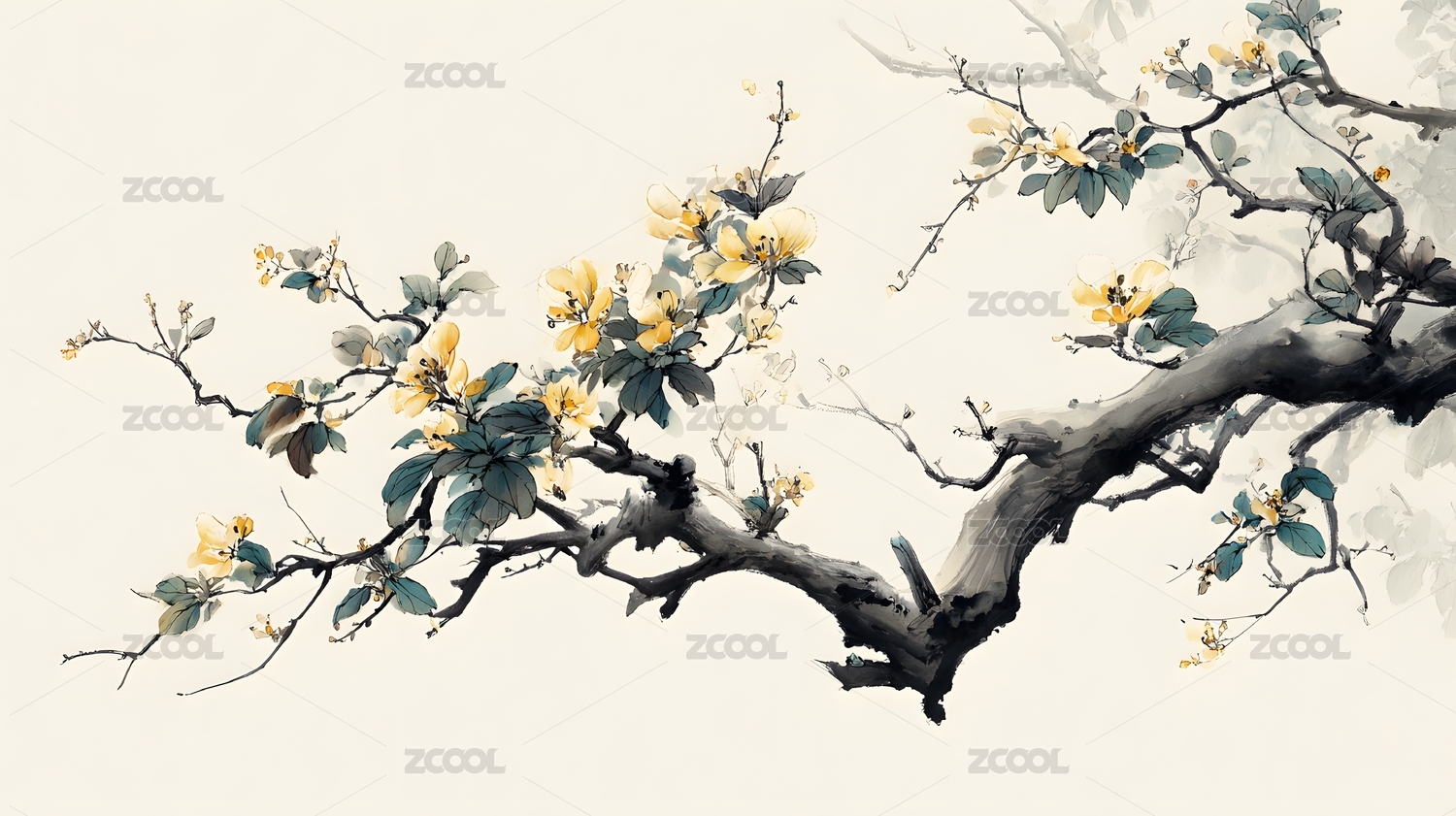 树枝,风格,植物,色彩,水墨画,中式,雅致,留白,古朴,树叶