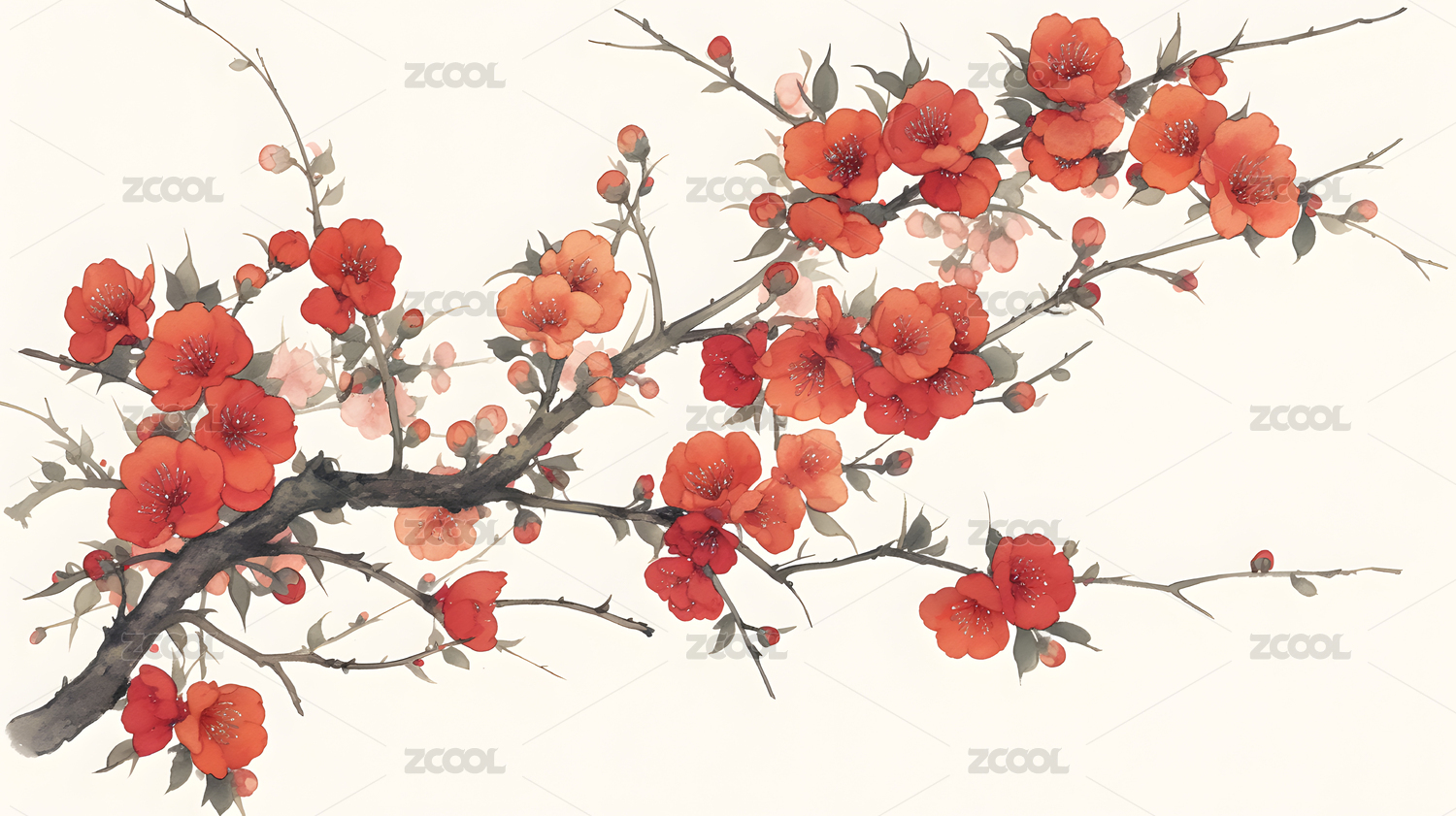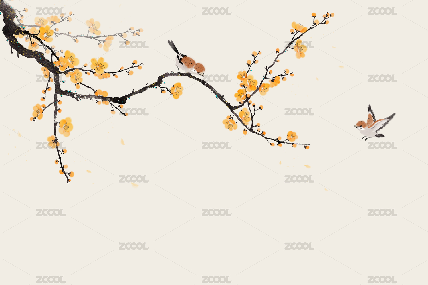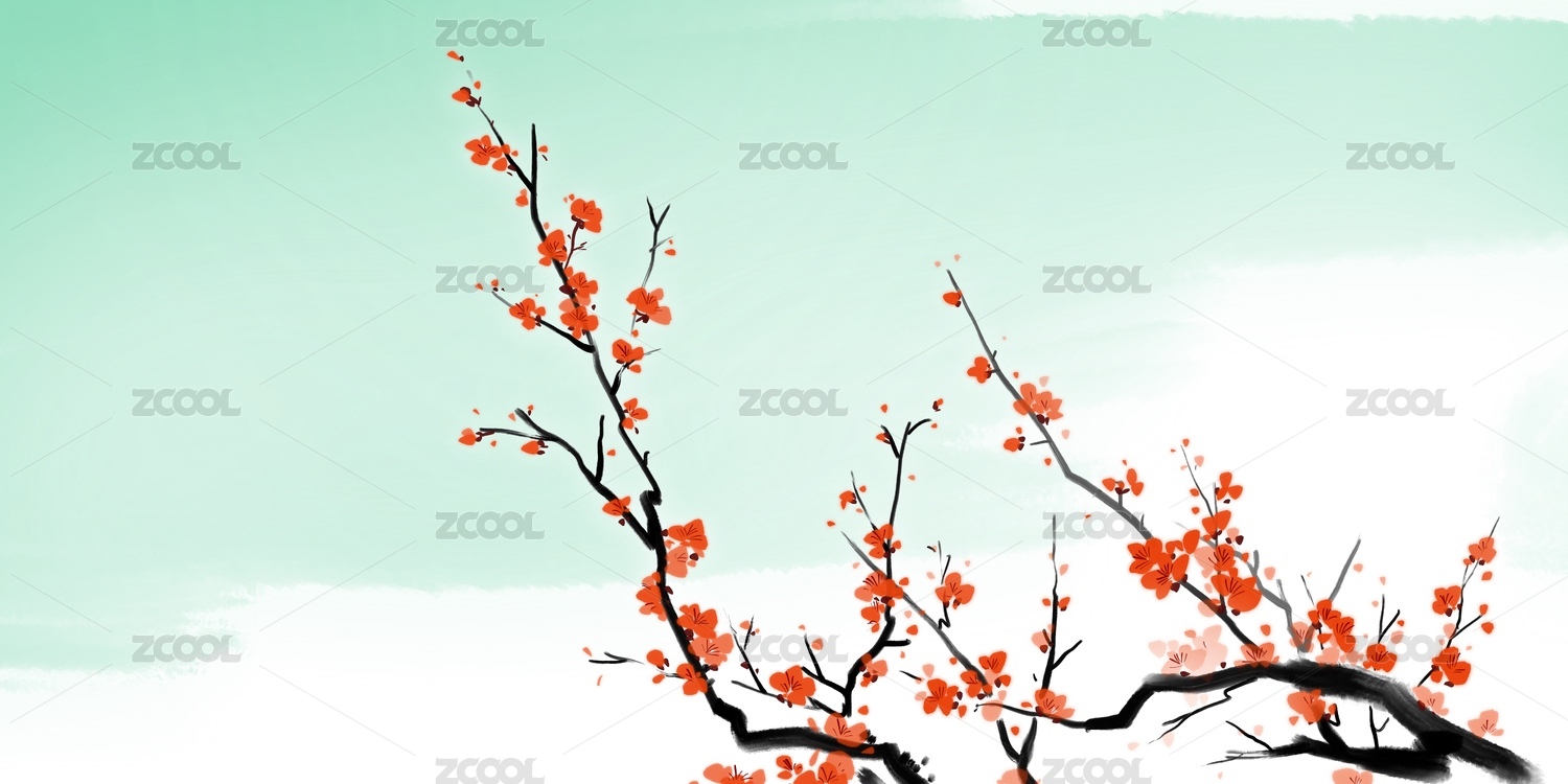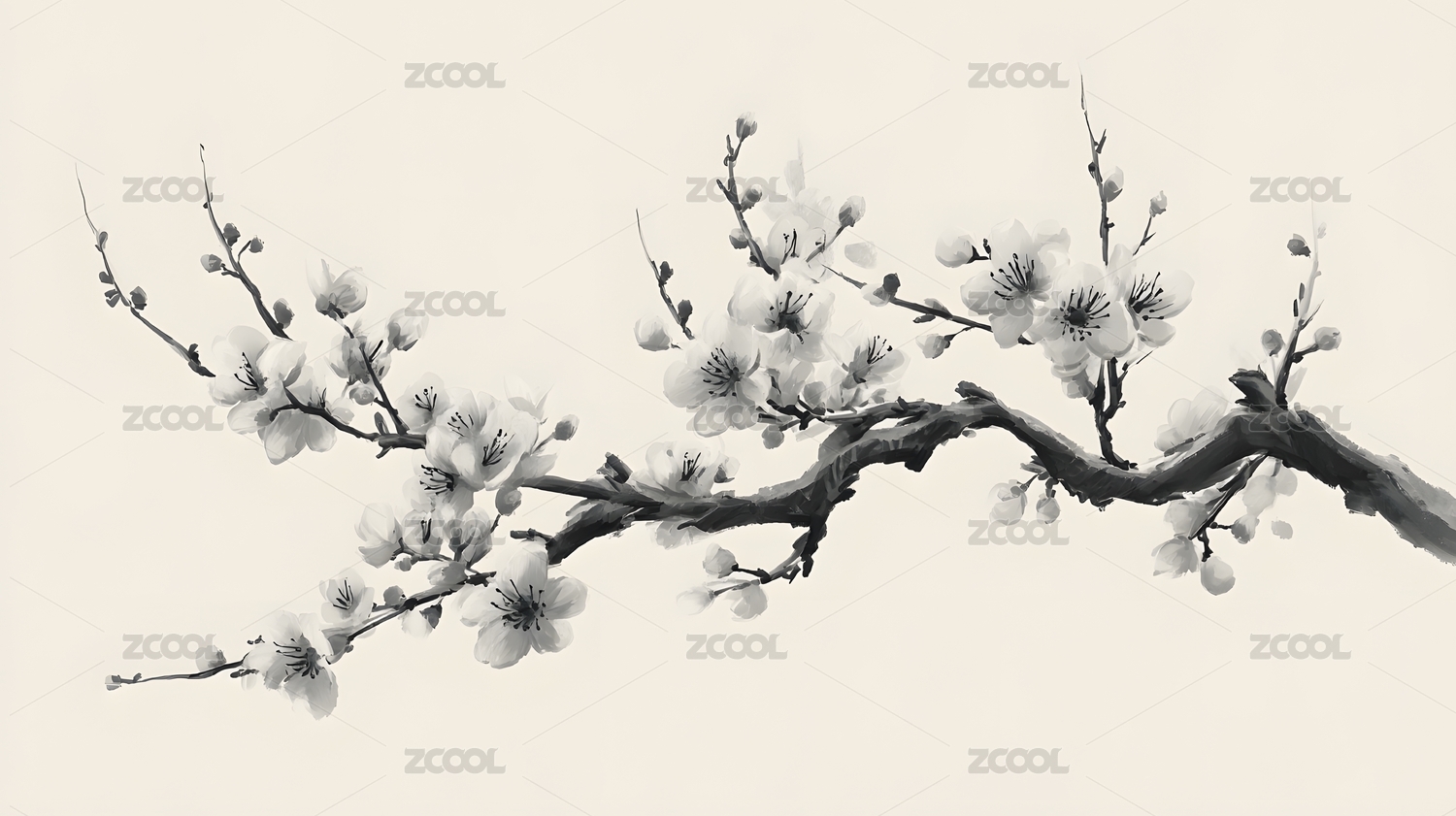 树枝,风格,植物,色彩,水墨画,中式,雅致,留白,古朴,树叶