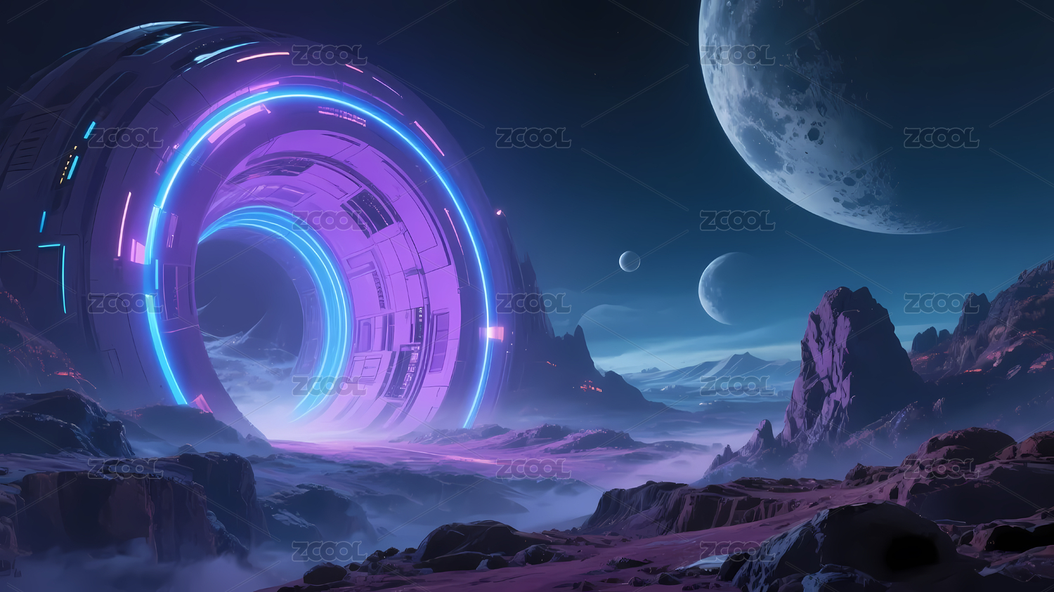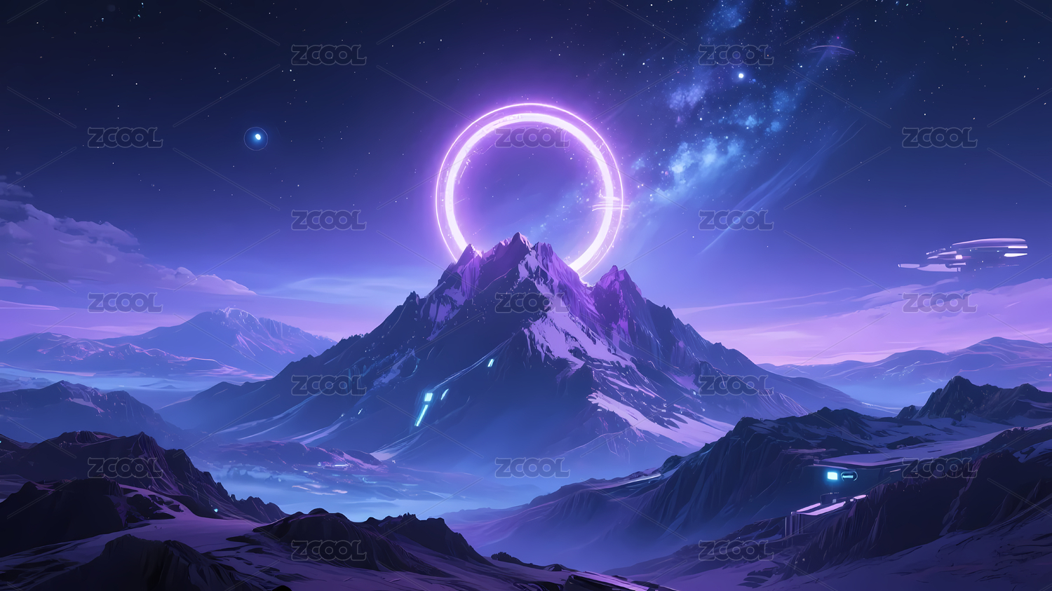 山脉,紫色,蓝色,自然,科技,发光,环形,星空,湖泊