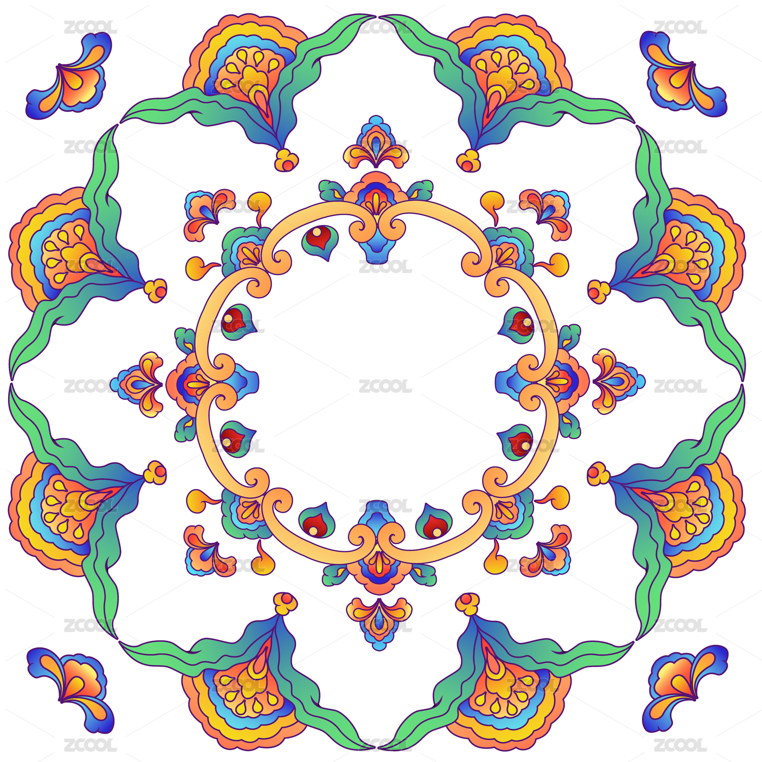 敦煌矢量民族风复古装饰花纹边框曼陀罗花边