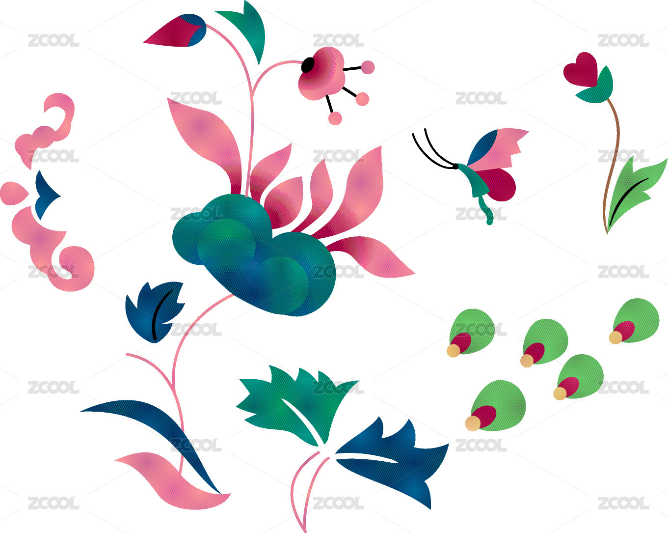 纹样,艺术,矢量图,中国风,色彩,民族,缠枝花卉纹