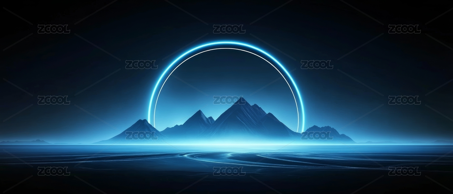 蓝色,神秘,深蓝,夜空,山脉,拱门,发光,冷色调,未来