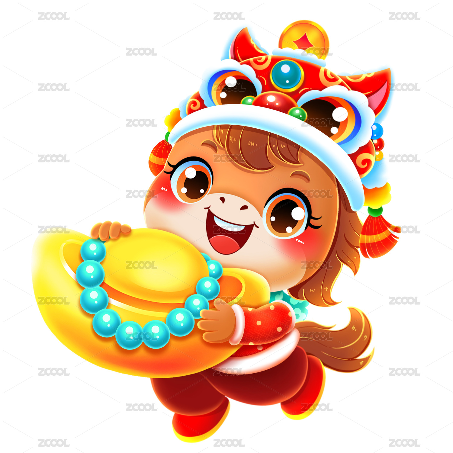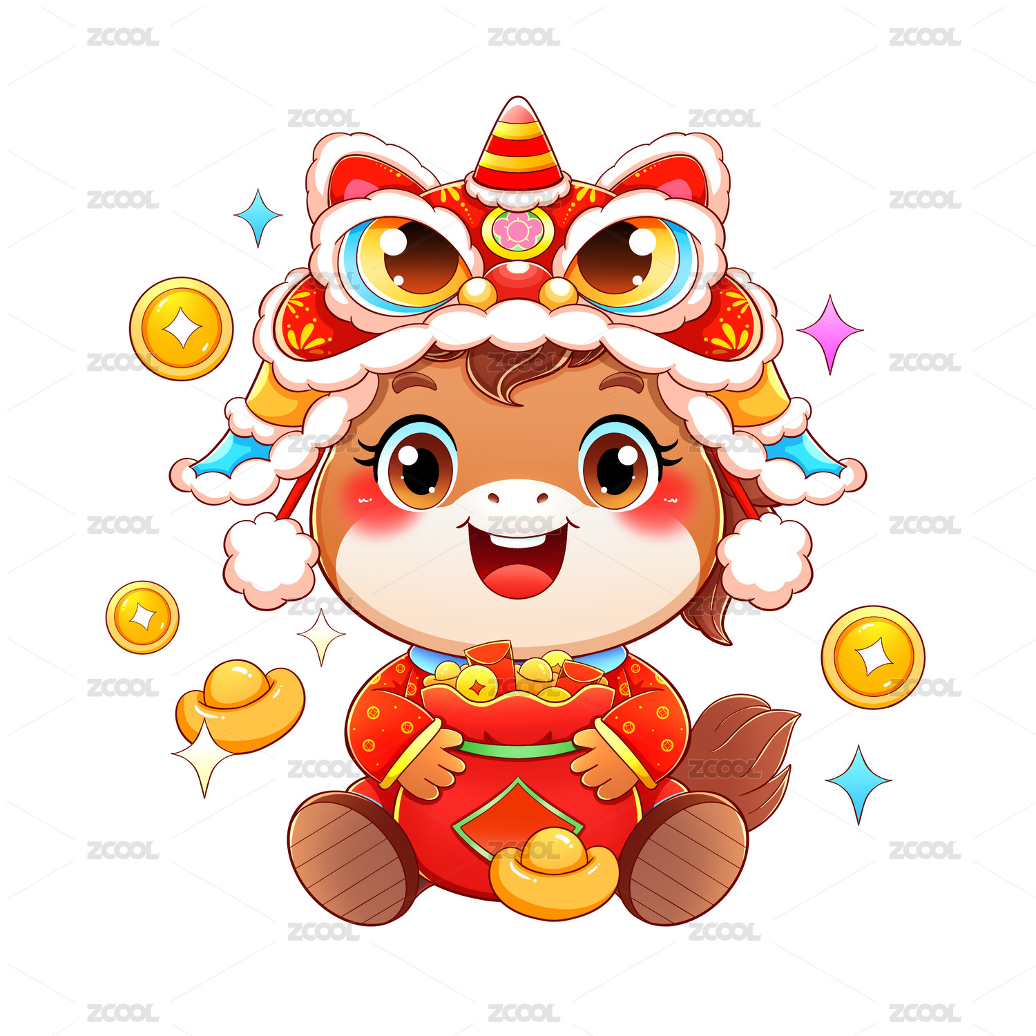 吉祥物,马年,马,生肖,新年,拜年,春节,卡通,可爱,坐姿