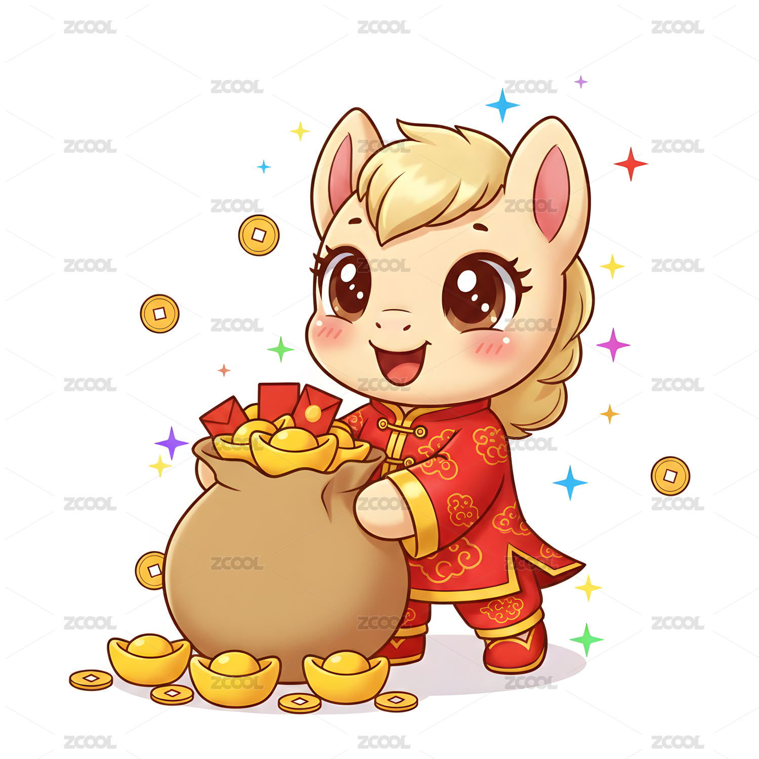马年抱金币喜庆插画
