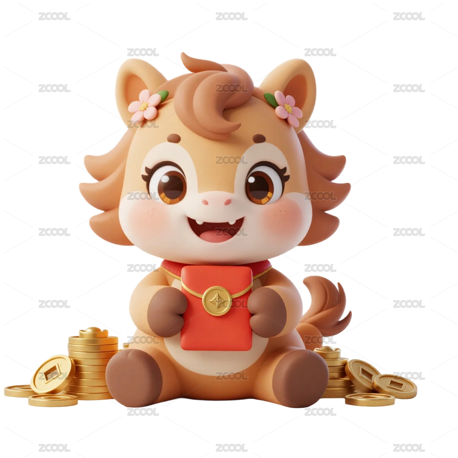 吉祥物,马年,马,生肖,新年,拜年,春节,卡通,可爱,坐姿